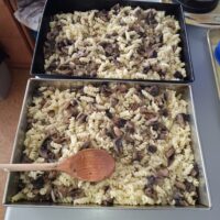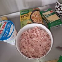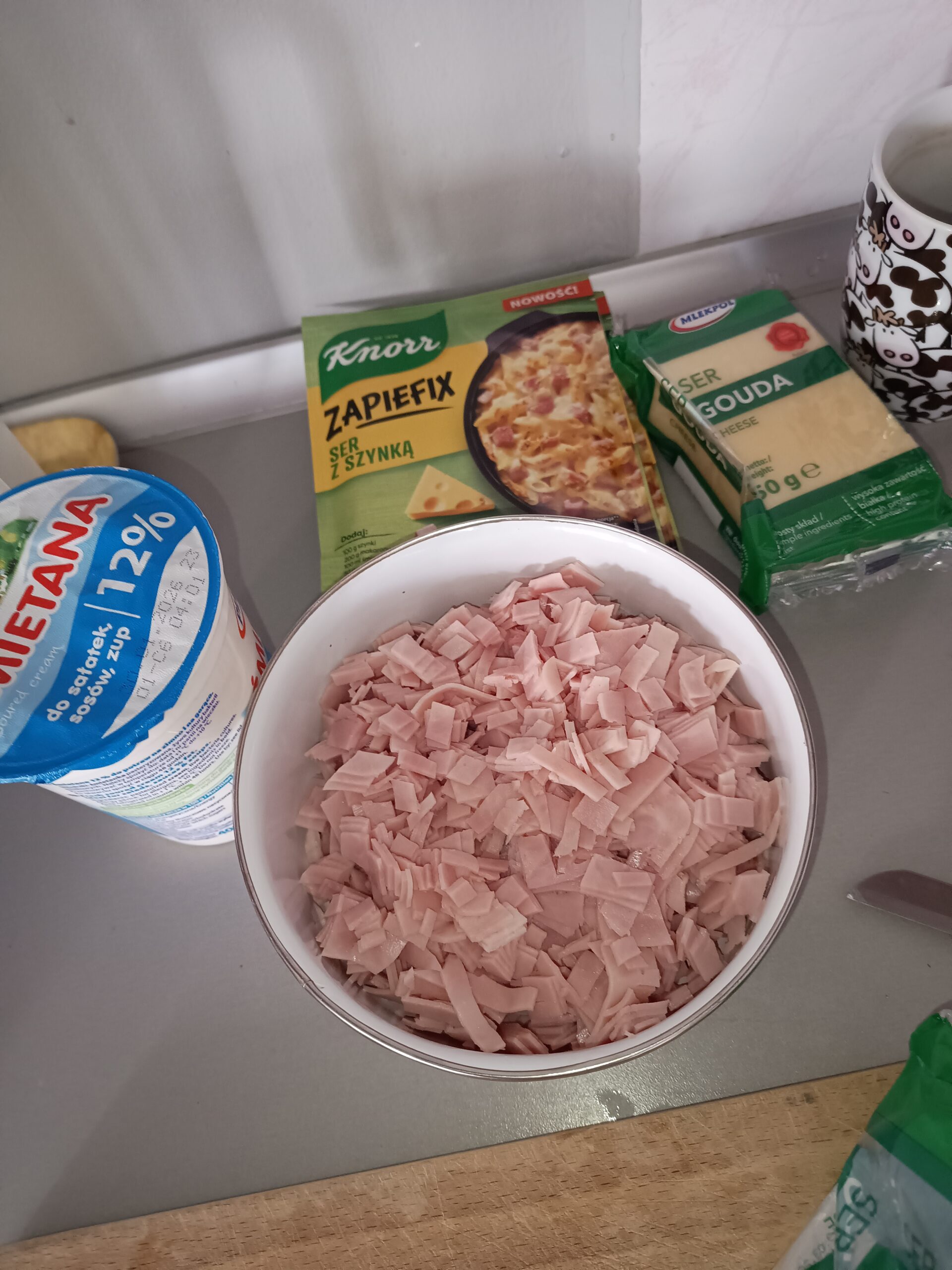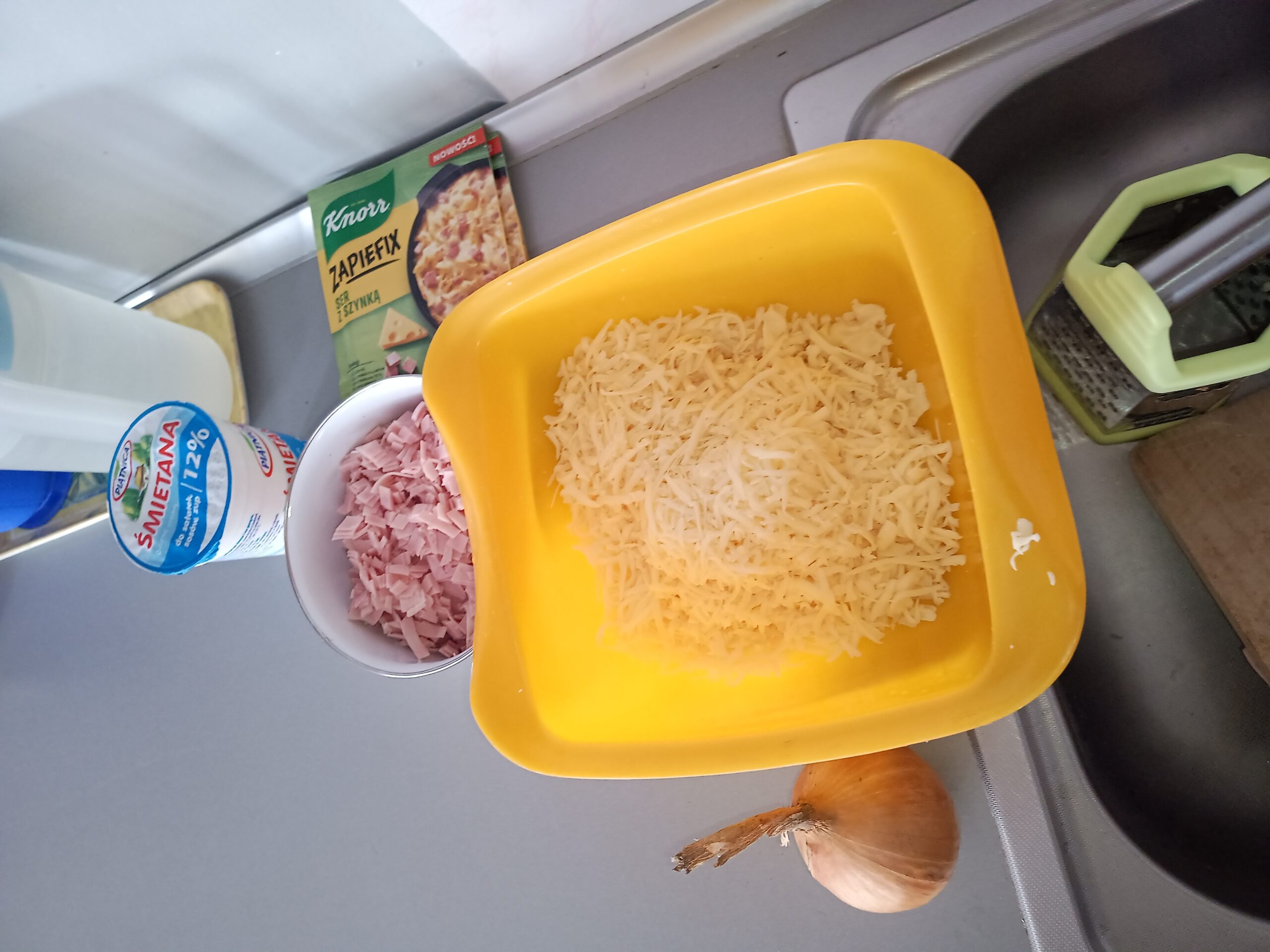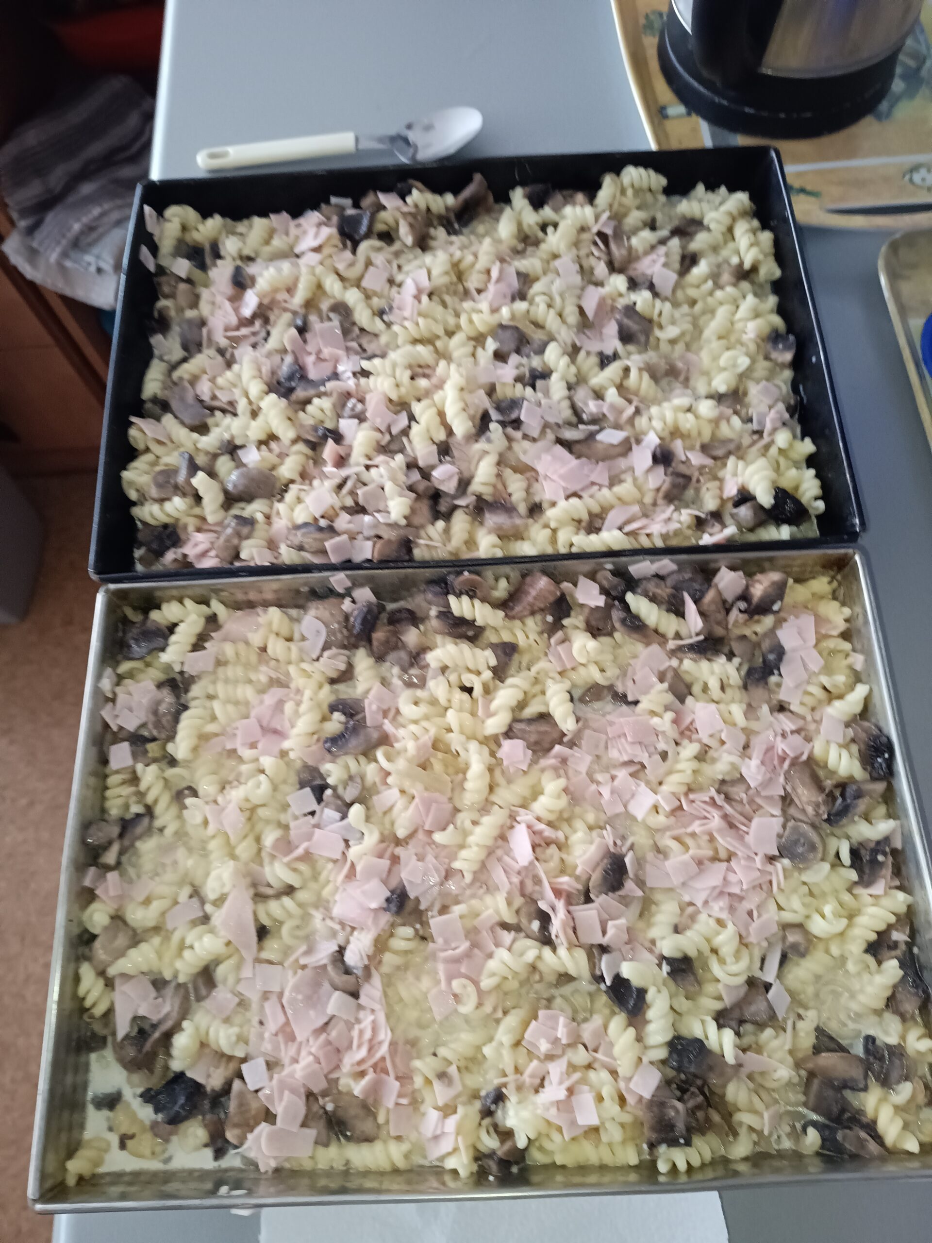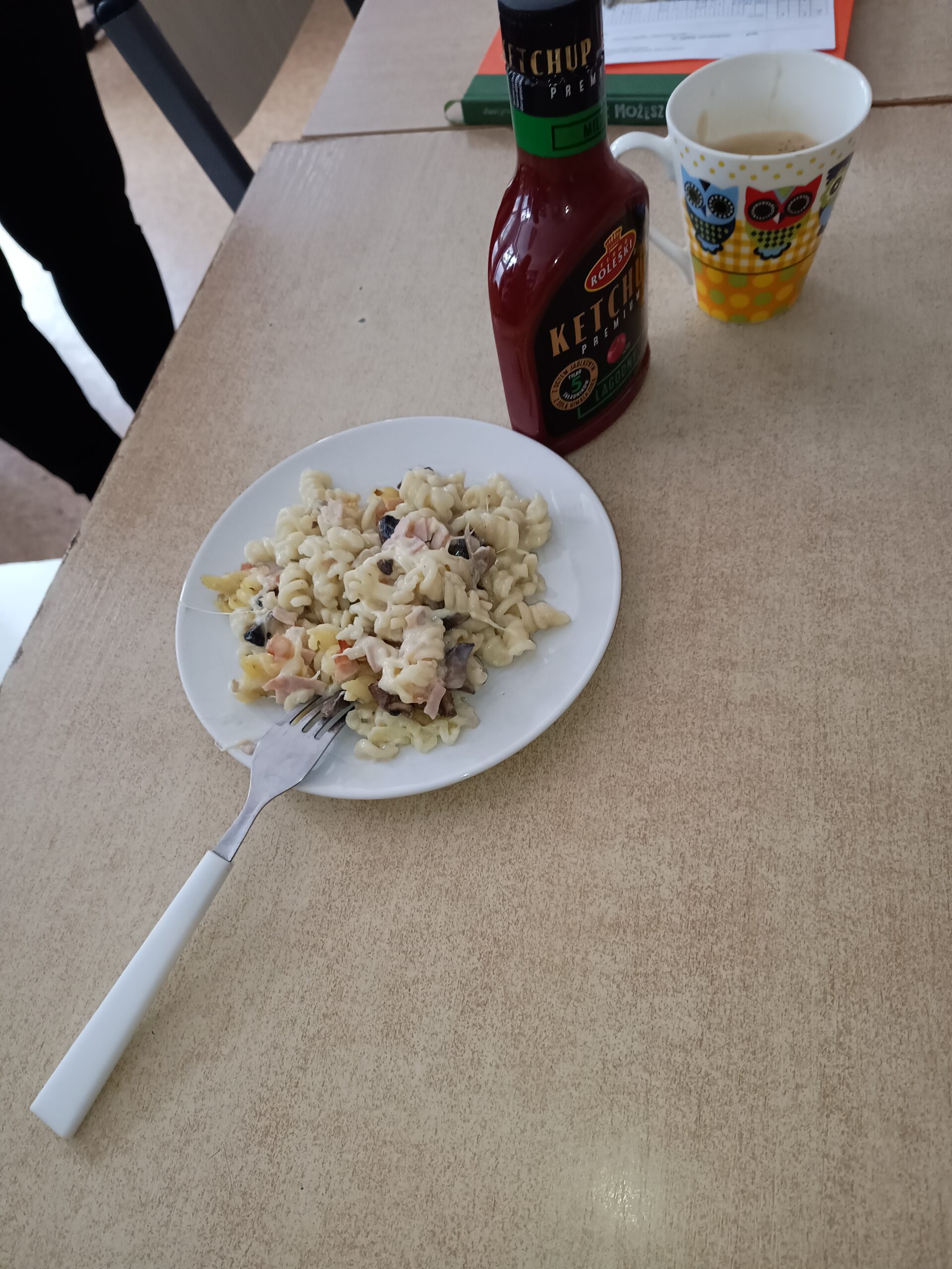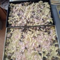 W dniu dzisiejszym w świetlicy szkolnej odbyły się zajęcia kulinarne, podczas których uczniowie przygotowali pyszną zapiekankę z makaronem, szynką i pieczarkami. Została też posypana startym serem. Dzieci uczyły się wykonywać różne czynności związane z przygotowaniem tego posiłku. Zapiekanka urozmaiciła nasze zmysły kulinarne oraz czas spędzony w świetlicy szkolnej.