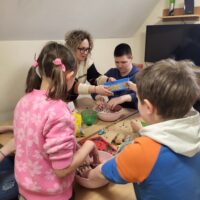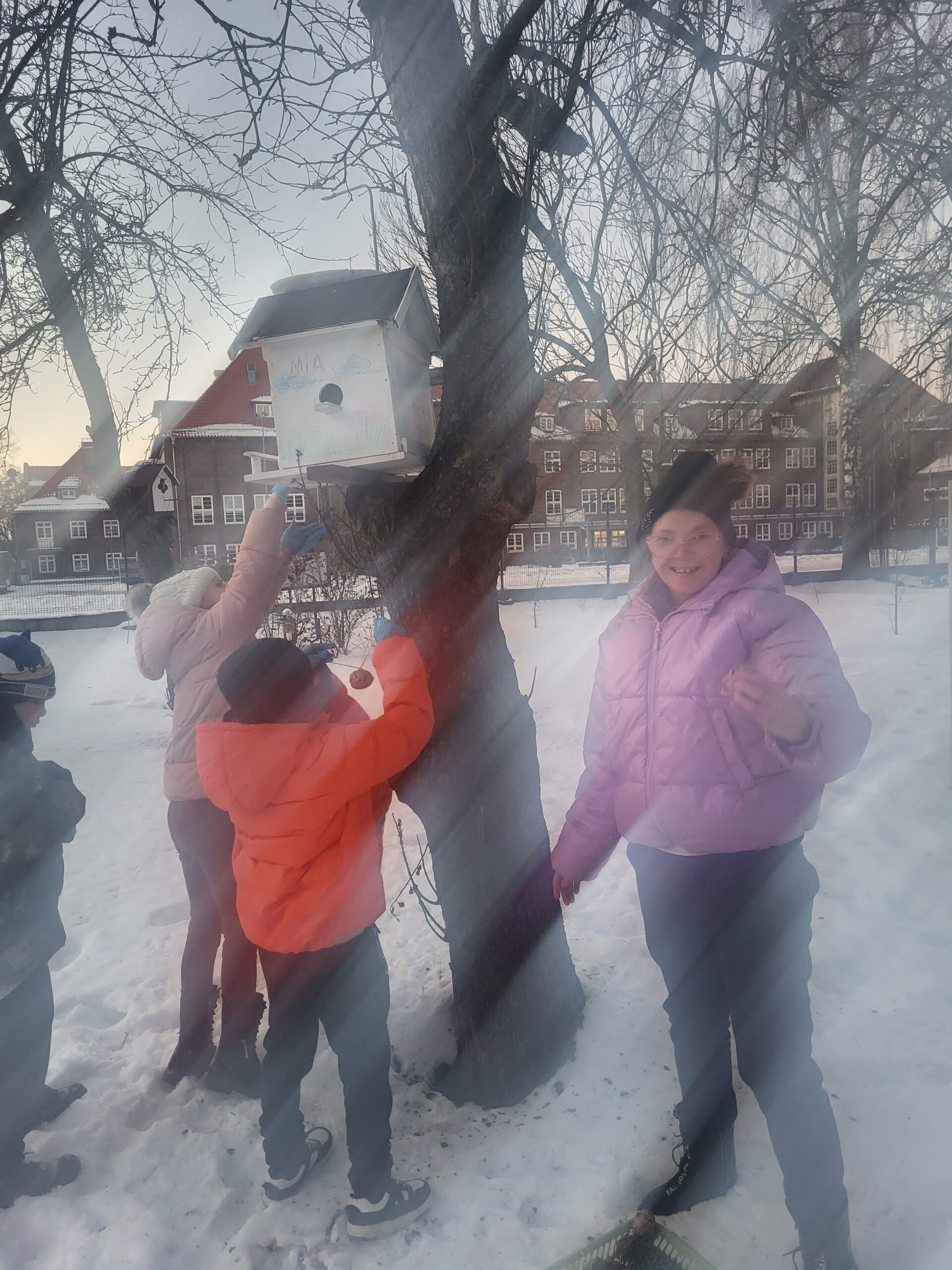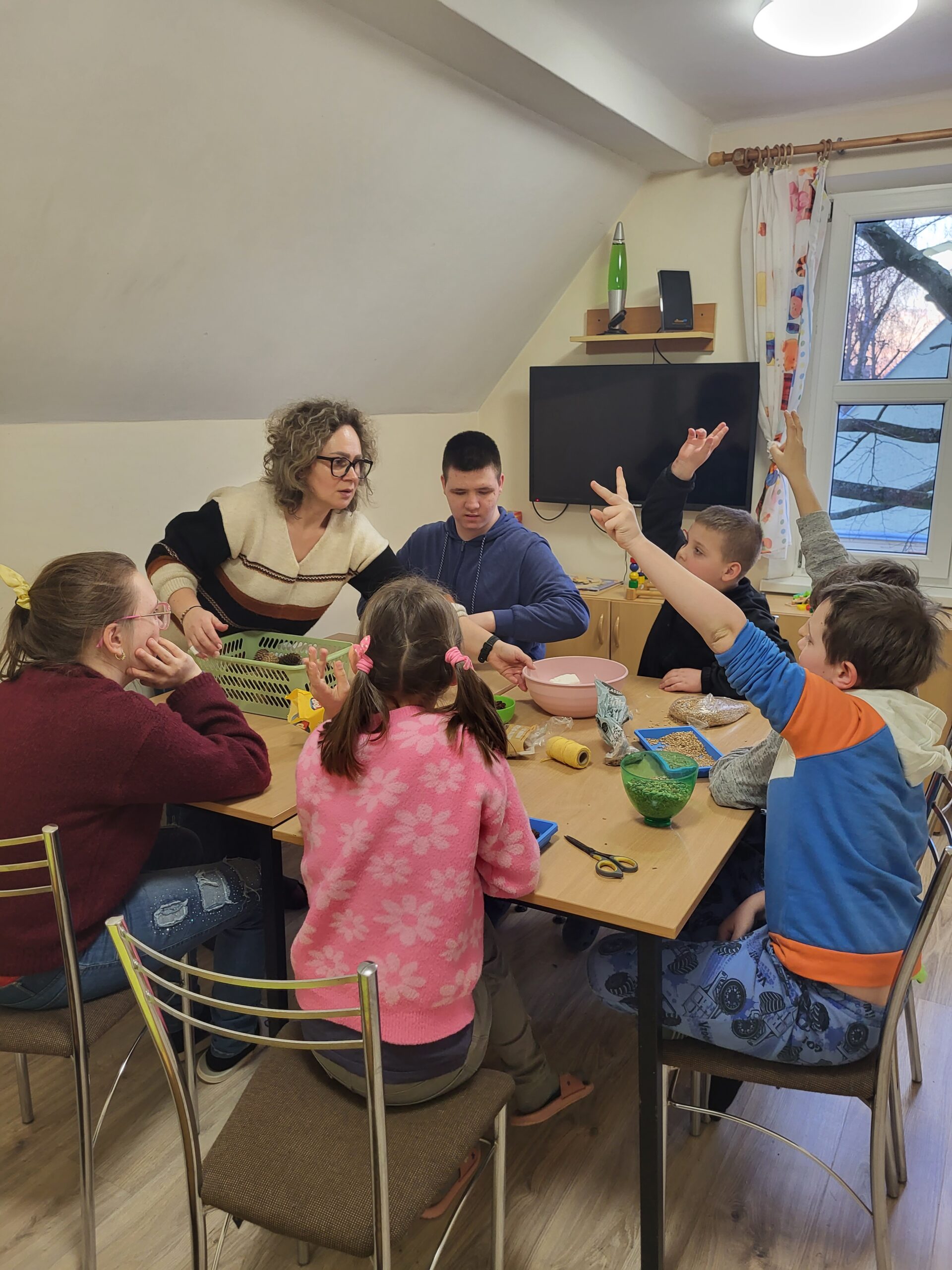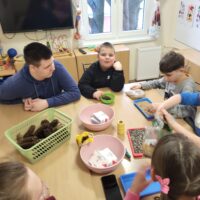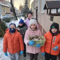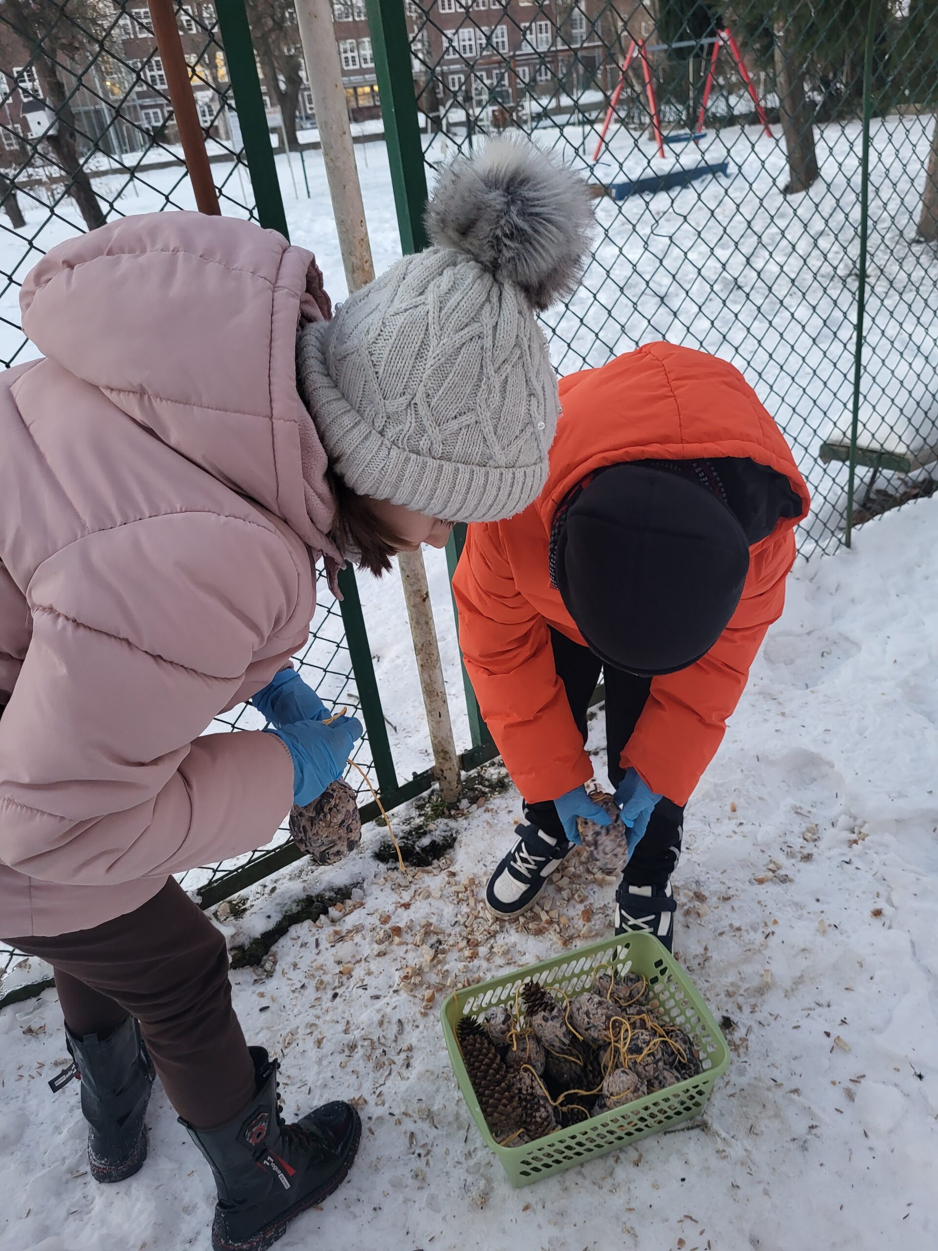 W ramach zajęć wychowawczych wychowankowie gr. II i I zorganizowali działania pt. ,,Stołówka dla ptaków.” Wychowankowie zapoznali się z zasadami dokarmiania ptaków w okresie zimowym oraz dowiedzieli się, jakie produkty są dla nich bezpieczne i wartościowe. Uczyli się samodzielnego formowania kul tłuszczowych, dobierania odpowiednich ziaren oraz przygotowywania mieszanek pokarmowych dla ptaków. Dzieci własnoręcznie porcjowały składniki, ugniatały masę oraz przygotowały kule do zawieszenia. Samodzielnie uczestniczyły również w zawieszaniu gotowych kul na terenie internatu. Wychowankowie każdego dnia mogą obserwować ptaki i dbać o regularne ich dokarmianie.