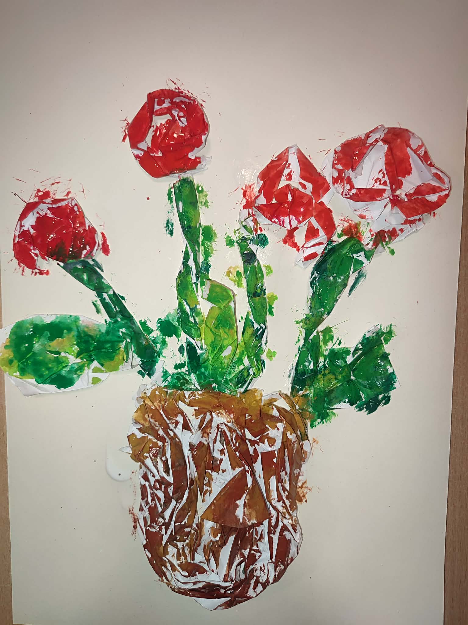 W ramach projektu plastycznego „Kreatywne Prace Plastyczne” wychowankowie wykonali kolejną pracę tym razem techniką płaskorzeźby pt.: „Róże w wazonie”.