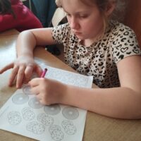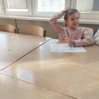 Pierwszym zadaniem było stworzenie własnej pizzy z papieru. Dzieci wyklejały ją ulubionymi składnikami, takimi jak ser, pieczarki czy pepperoni, ćwicząc przy tym sprawność manualną i rozwijając wyobraźnię.