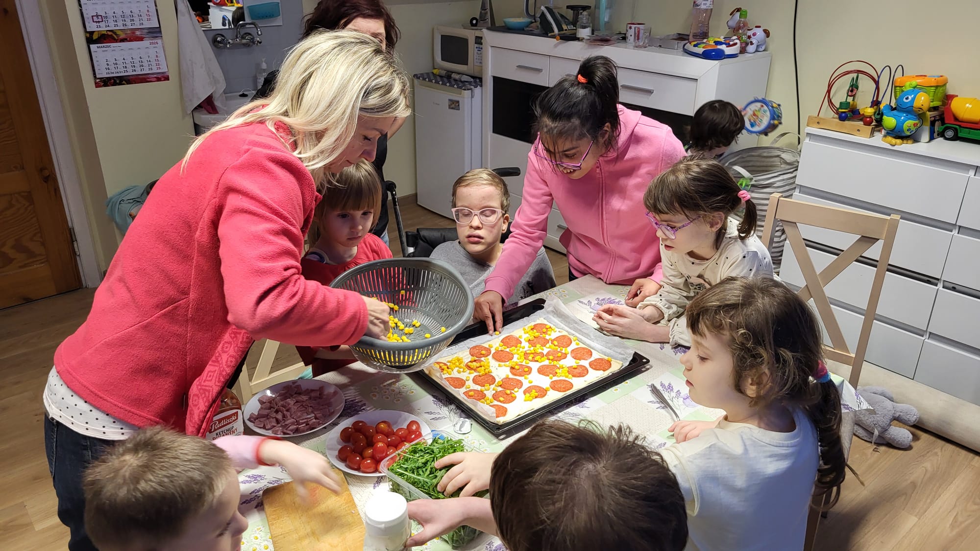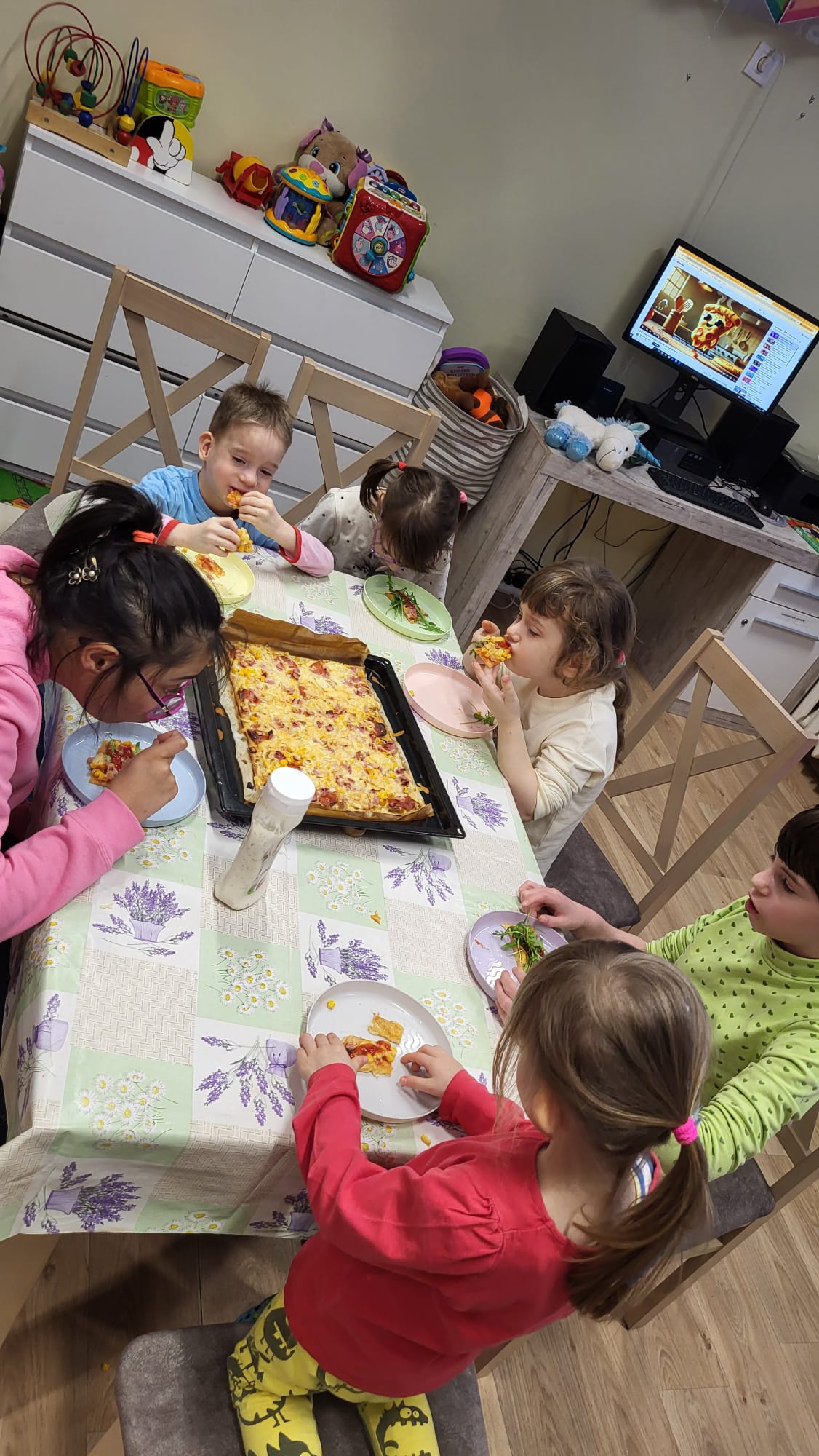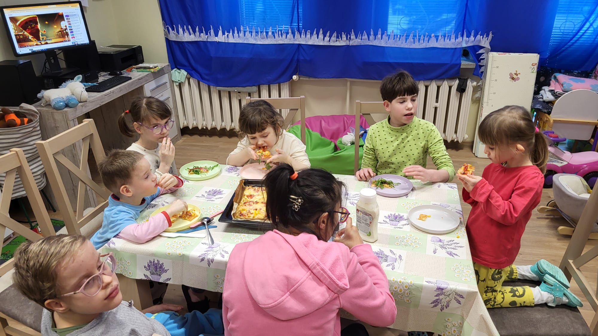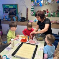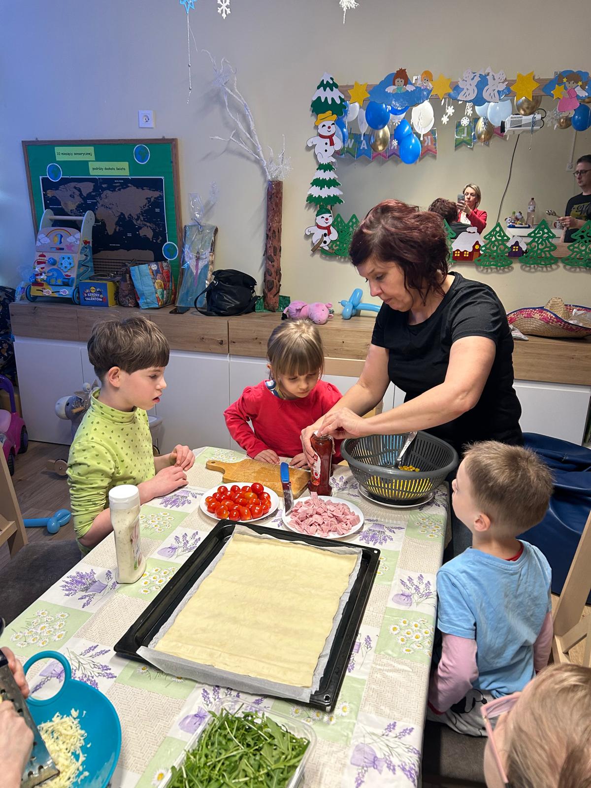 W poniedziałek 9 lutego w DPS obchodziliśmy „Międzynarodowy Dzień Pizzy”. Tego dnia nasza klasa zamieniła się we włoską pizzerię. Podczas oglądania prezentacji multimedialnej nasi podopieczni mieli okazję poznać historię powstania tej potrawy oraz zobaczyć, jak powstaje ten włoski placek i jakich składników potrzeba, aby go przygotować. Następnie zamienili się w prawdziwych kucharzy i wspólnie z przygotowanych składników skomponowali własne, niepowtarzalne w smaku pizze. Podczas jej pieczenia bawili się przy piosenkach z pizzą w roli głównej. Kulminacyjnym punktem tego wyjątkowego dnia było zjedzenie przepysznej pizzy. Był to niezapomniany dzień, pełen uśmiechów, zabawy i wspólnego świętowania.
