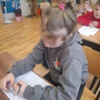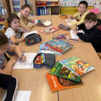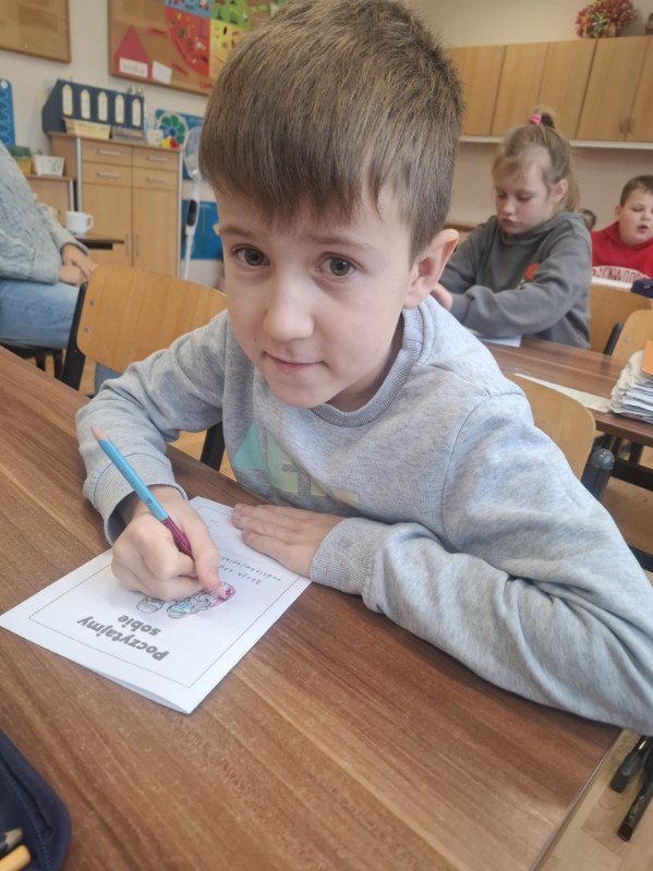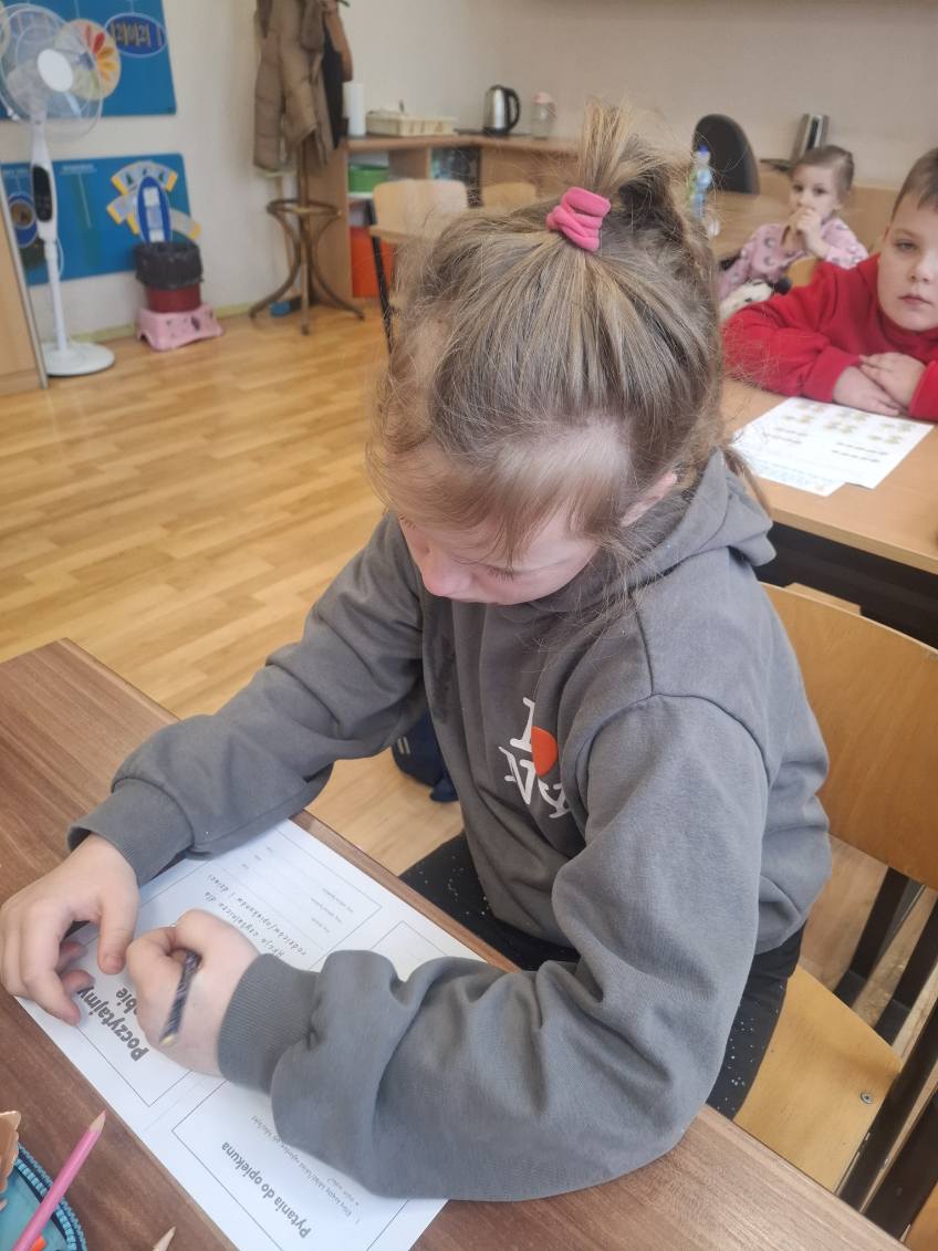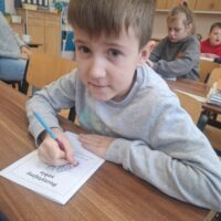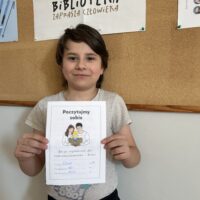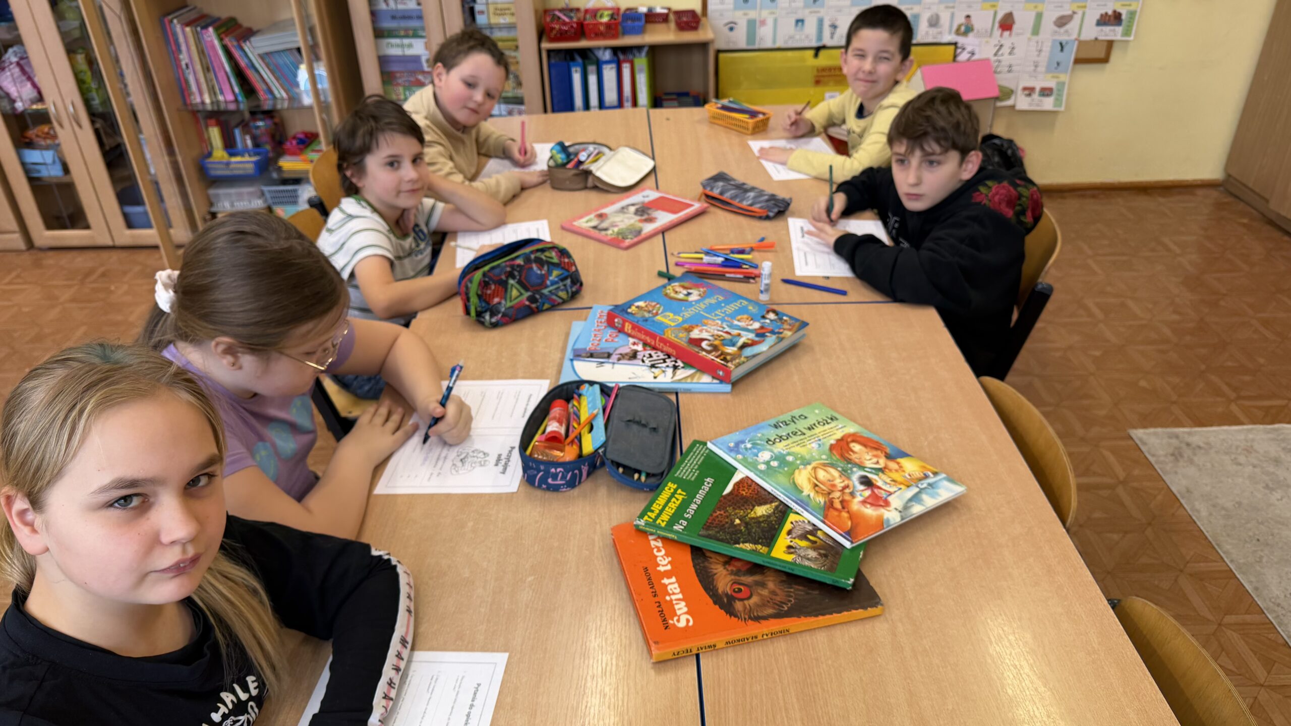 Po powrocie do szkoły uczniowie przynieśli wypełnione karty pracy i zaprezentowali efekty swojego udziału w akcji – z zaangażowaniem wykonali powierzone zadanie, a przygotowane materiały stały się dla nich czytelniczą pamiątką.