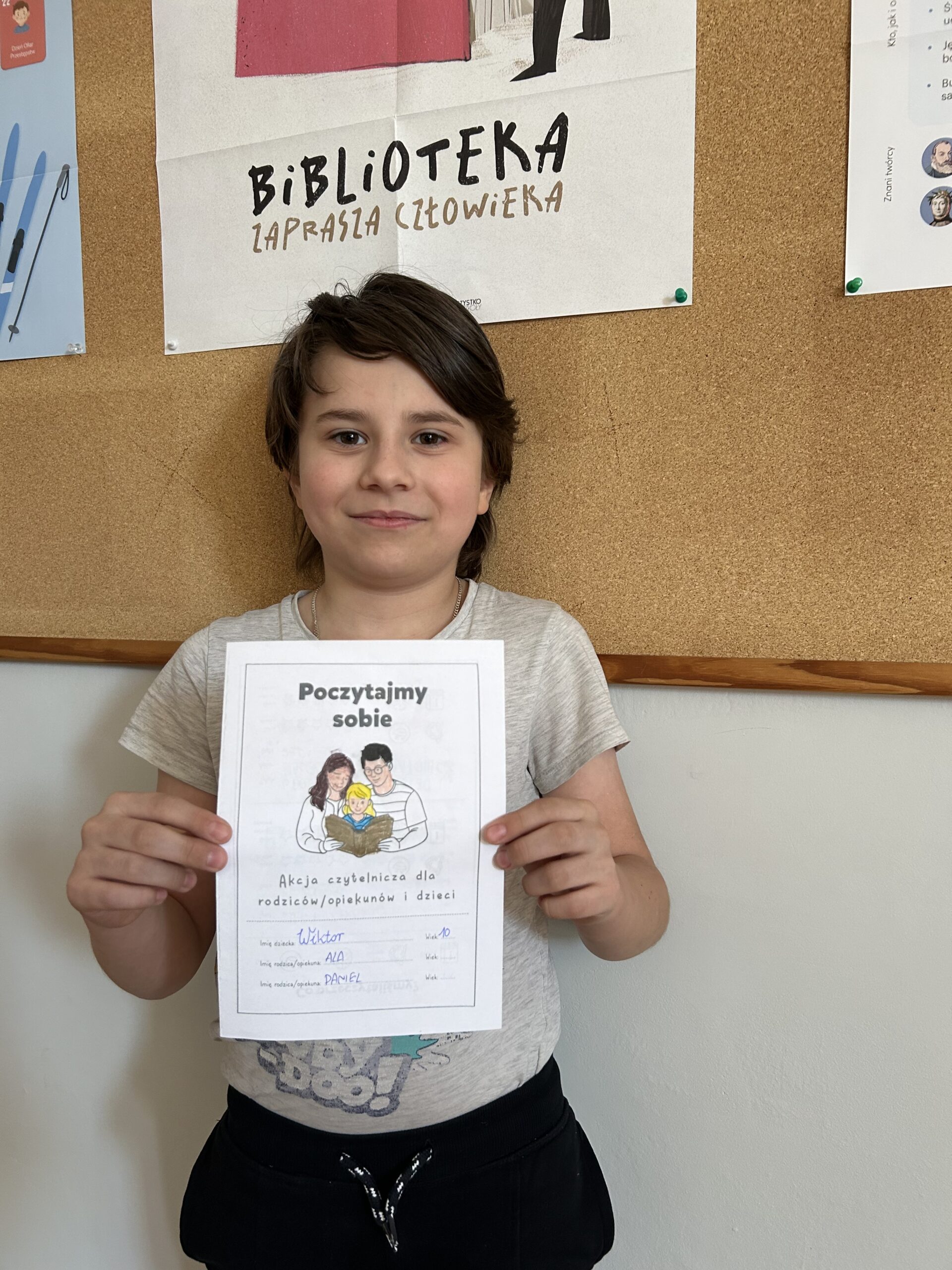Przed feriami zimowymi uczniowie otrzymali karty pracy – czytelnicze pamiętniki, które zabierali do domu. W czasie ferii, wspólnie z rodzicami i opiekunami, czytali wybrane książki i uzupełniali swoje karty. Była to okazja do kontaktu z książką w spokojnej, domowej atmosferze oraz do utrwalania nawyku sięgania po literaturę.