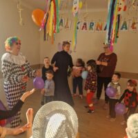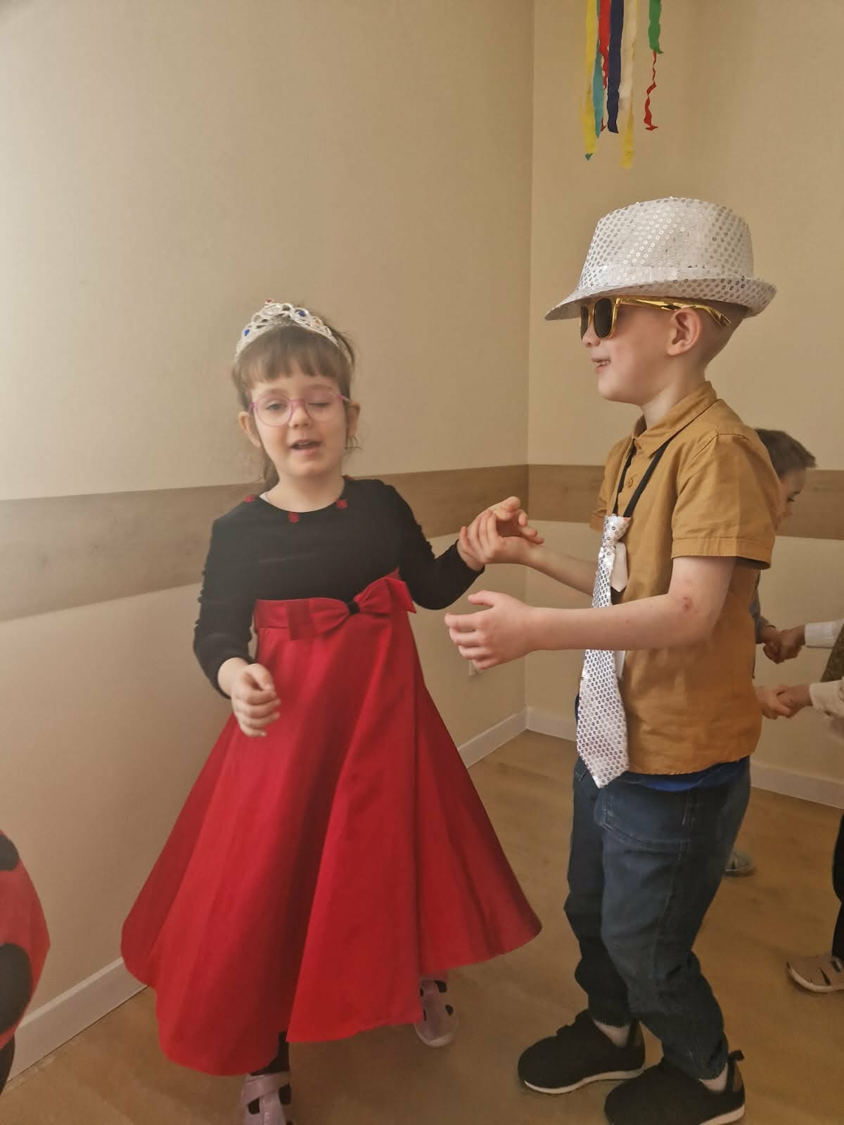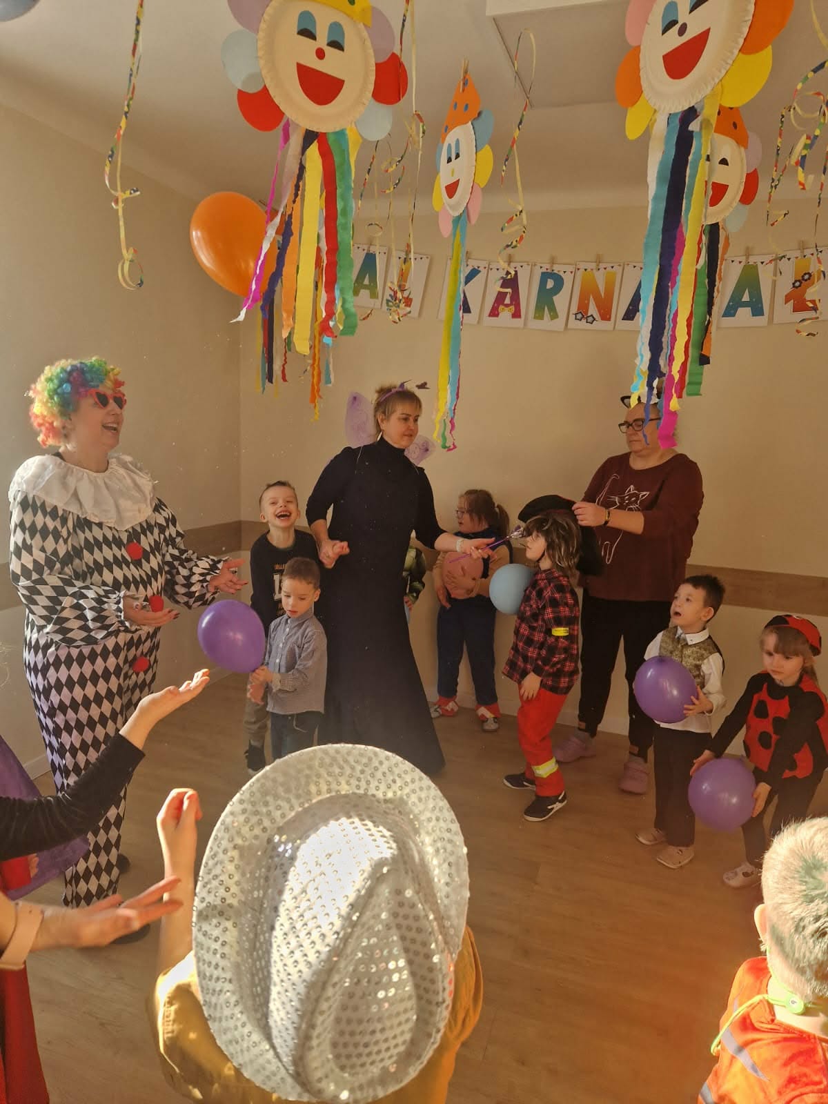 Bal karnawałowy to jedno z najbardziej wyczekiwanych wydarzeń w całym roku. Tego dnia sala zamieniła się w kolorową krainę pełną, serpentyn i kolorowych dekoracji, a dzieci przyszły ubrane w niezwykłe stroje. Uroczystość rozpoczęła się wspólnym powitaniem i prezentacją kostiumów. Każde dziecko z dumą pokazało swój strój, a na twarzach widać było radość i ekscytację. Były tańce i wspólne zabawy przy wesołej muzyce. Bal karnawałowy w przedszkolu to nie tylko wspaniała zabawa, ale także okazja do rozwijania wyobraźni, odwagi i umiejętności współpracy. Dla wielu dzieci to dzień pełen magii, który na długo pozostaje w pamięci.