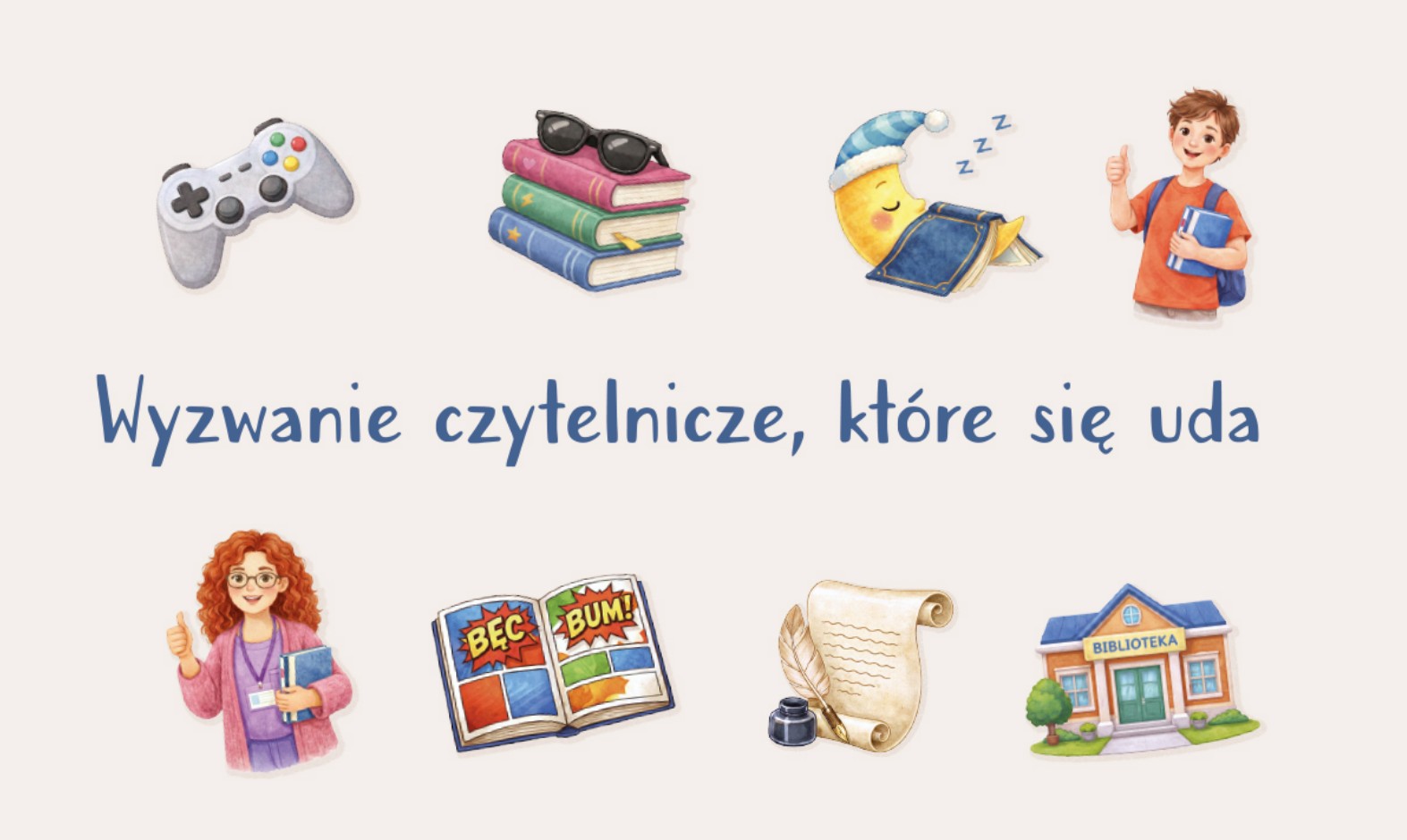 Zapraszam uczniów do odwiedzania biblioteki, wypożyczania książek i podejmowania czytelniczego wyzwania. Zachęcam również rodziców i nauczycieli do wspierania dzieci w odkrywaniu radości czytania