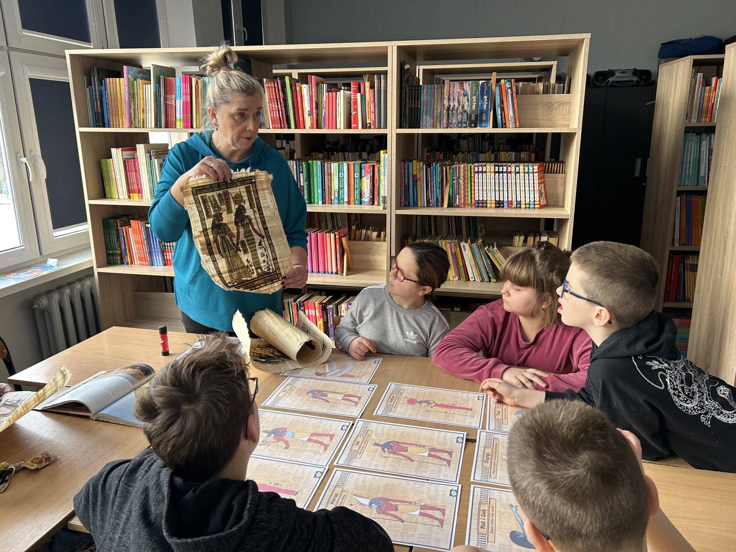 W lutym w szkolnej bibliotece odbyły się kolejne zajęcia w ramach projektu „Podróże małe i duże”. Tym razem uczniowie poznają Egipt – jego położenie, symbole oraz elementy kultury starożytnej.