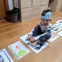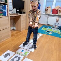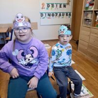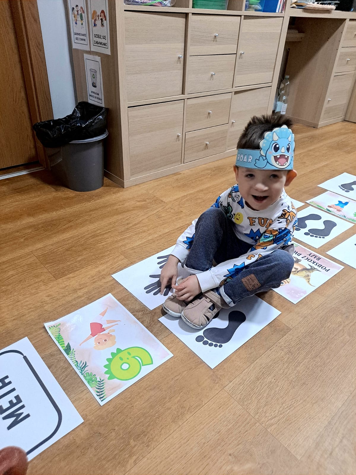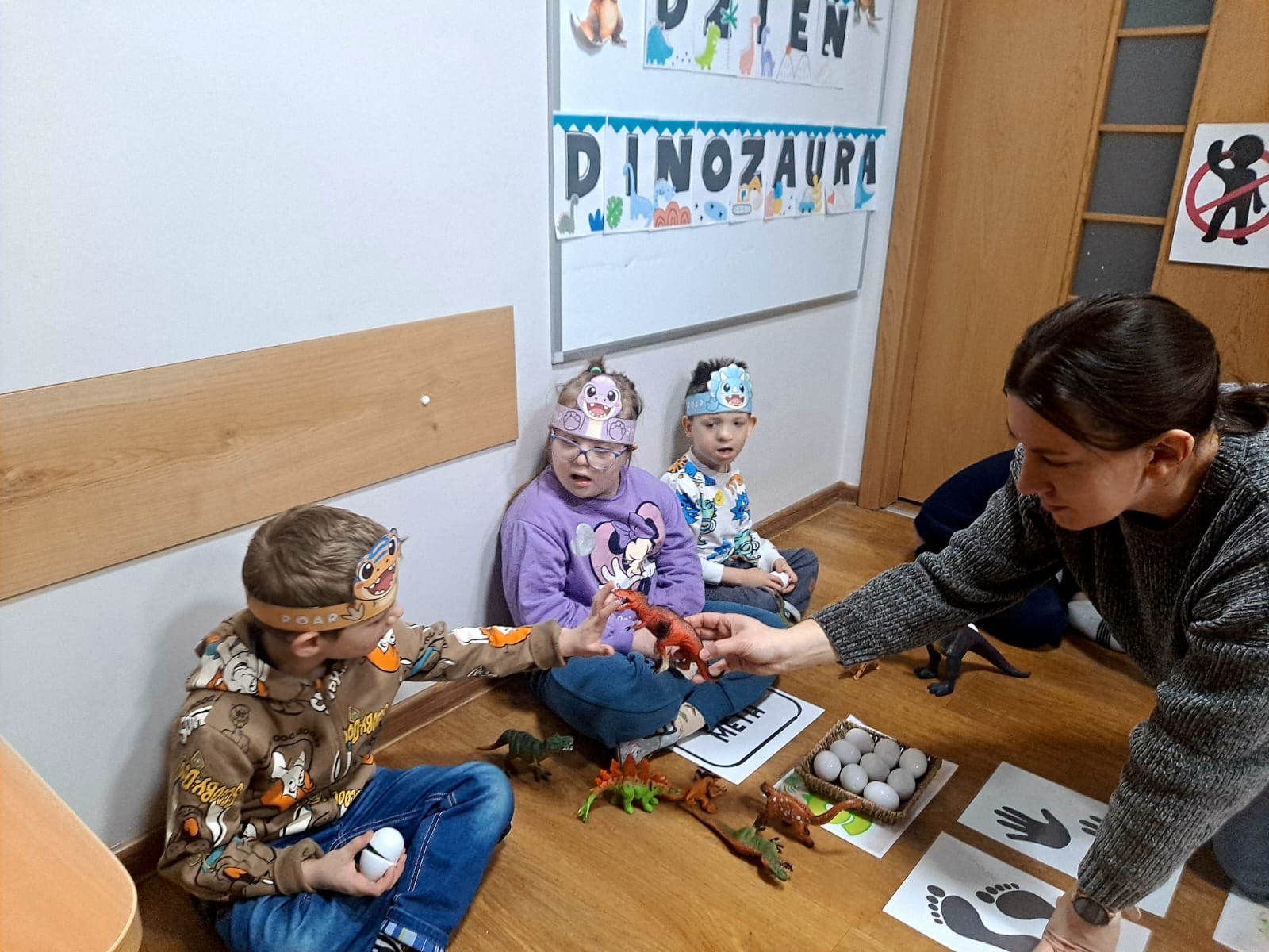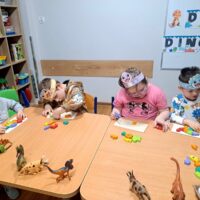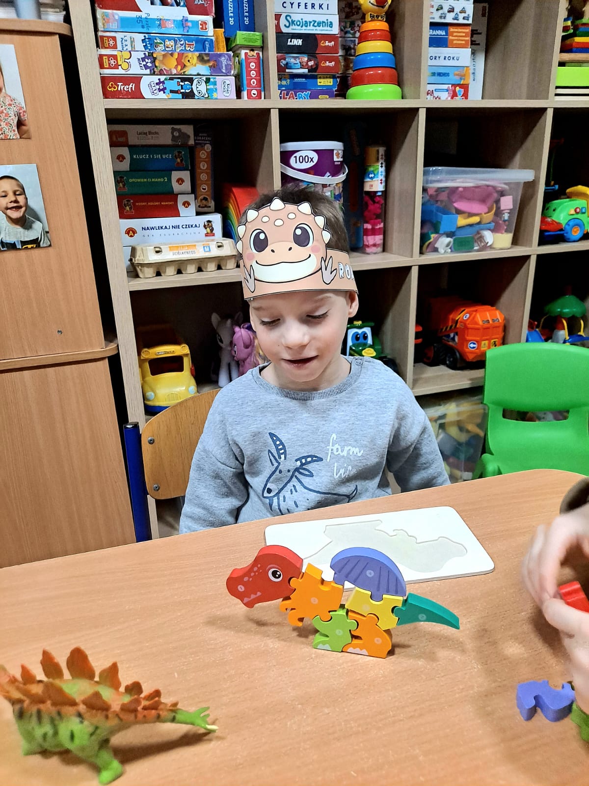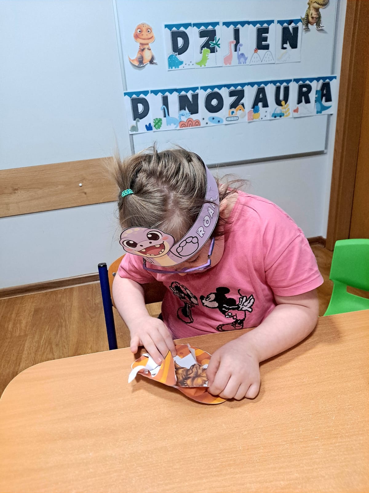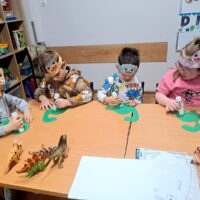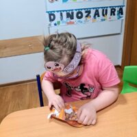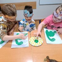 Na zakończenie dnia odbyły się warsztaty plastyczne. Dzieci wykonały własnego dinozaura z papieru, a charakterystyczne kolce namalowały samodzielnie, maczając palce w zielonej farbie. To był dzień pełen wrażeń!