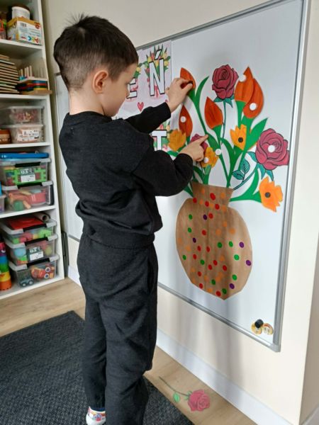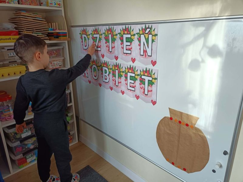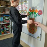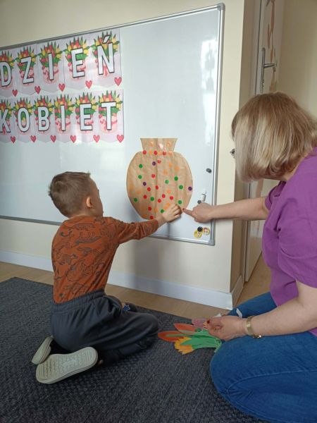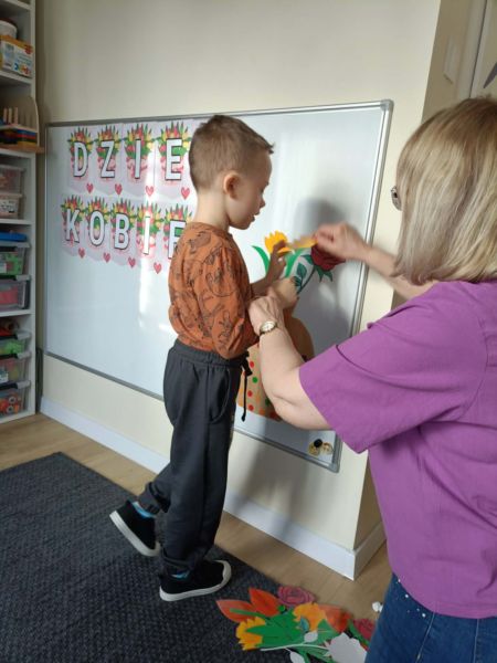 Z okazji Dnia Kobiet w grupie ,,Pracowite Mrówki” odbyły się wyjątkowe zajęcia. Dzieci rozmawiały o tym, jak ważne są kobiety w ich życiu – mamy, babcie, siostry oraz panie pracujące w przedszkolu. Szczególnym momentem było przygotowanie niespodzianki przez chłopców, którzy z dużym zaangażowaniem wykonali piękny bukiet z kwiatów dla wszystkich małych i dużych kobiet. Był to miły gest pełen serdeczności i wdzięczności.
