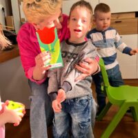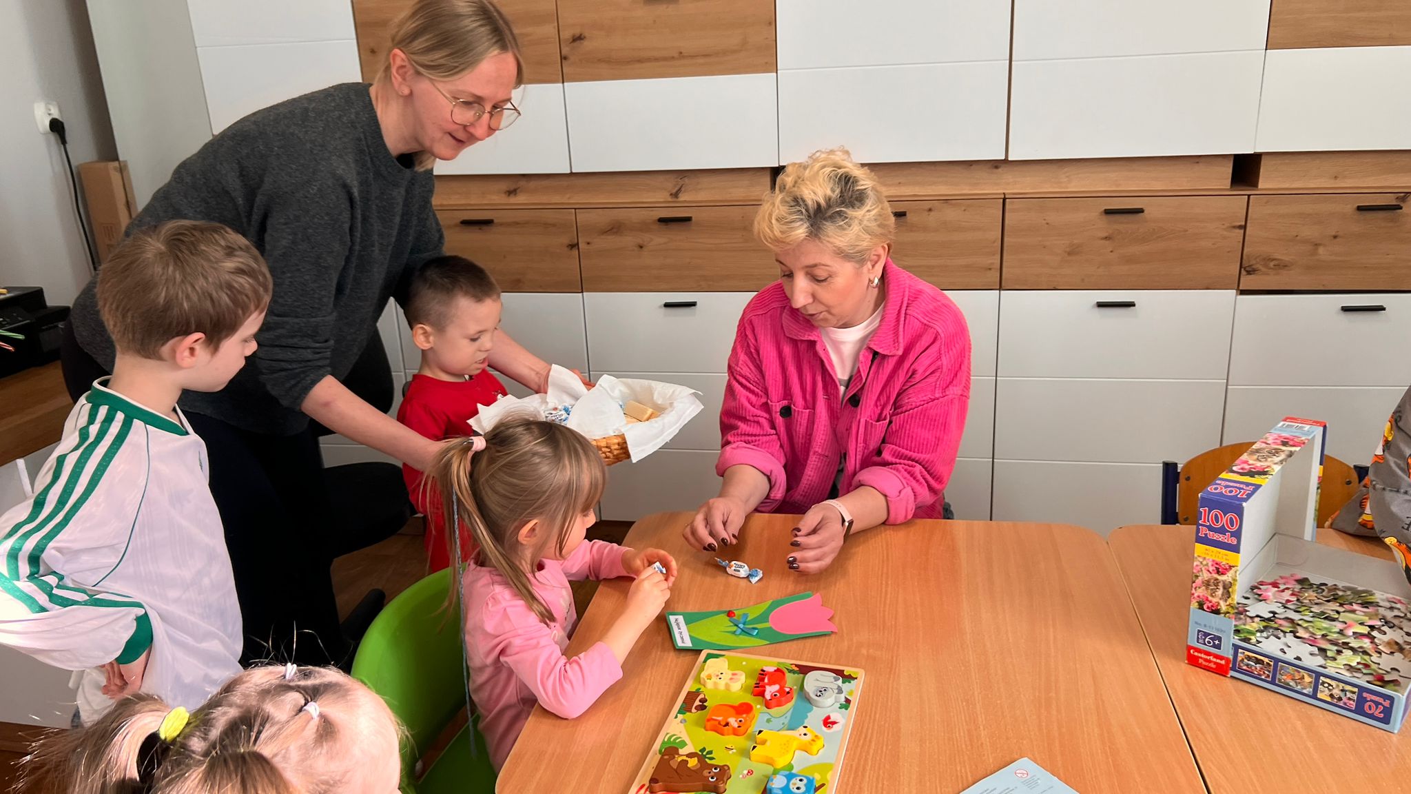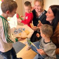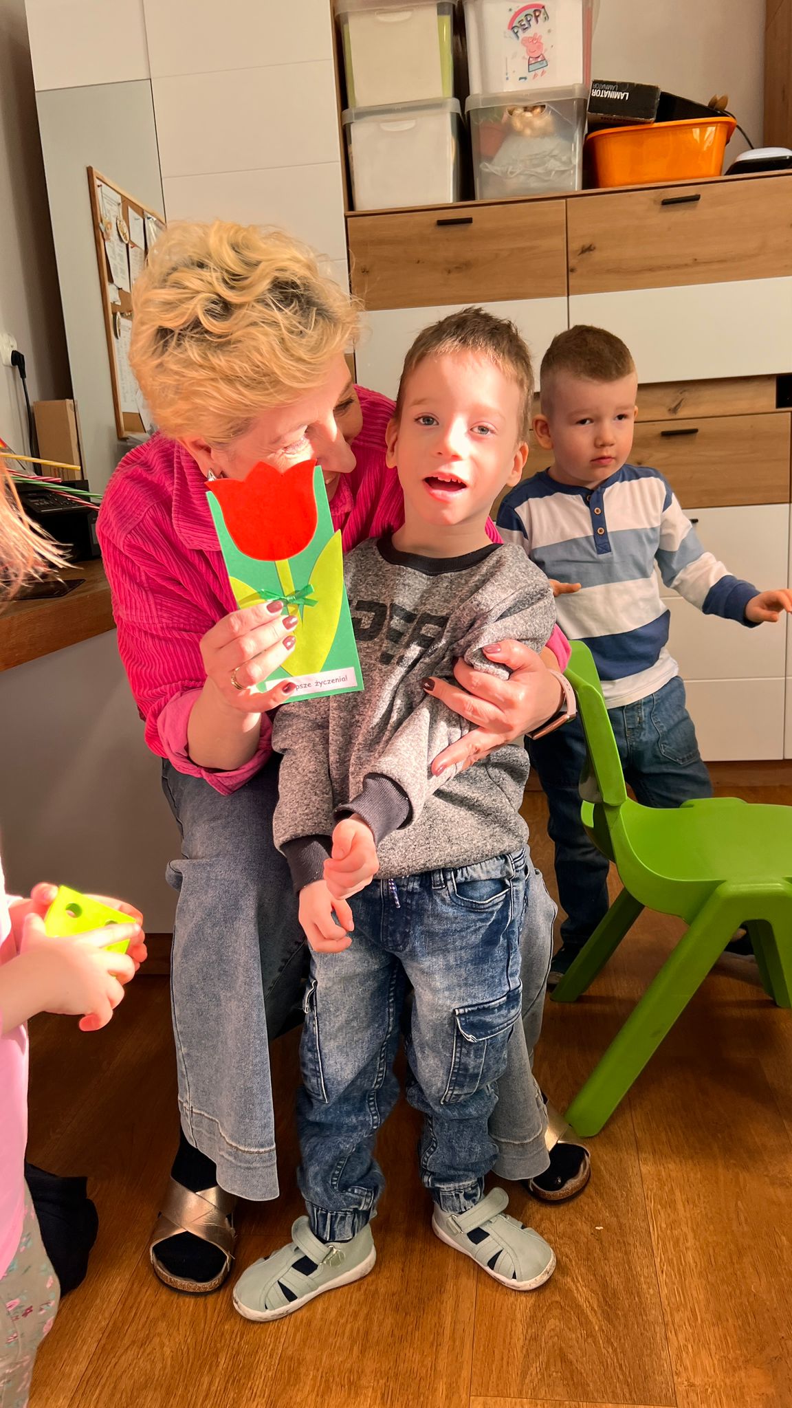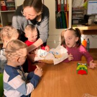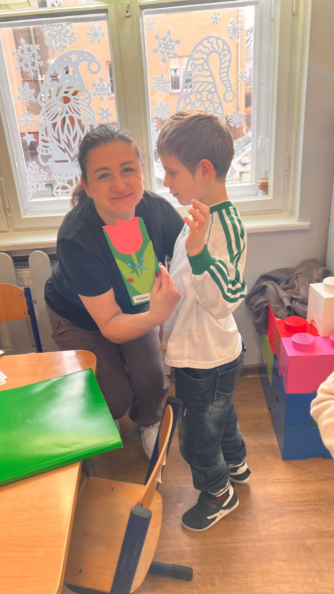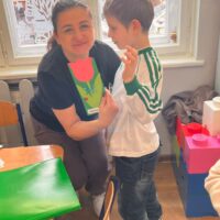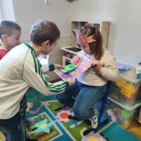 W grupie Tygryski Urwiski, w której jest tylko jedna dziewczynka, mali dżentelmeni stanęli na wysokości zadania, by ten dzień był naprawdę magiczny. Od samego rana w sali panowała wesoła atmosfera. Chłopcy chętnie brali udział we wspólnych zabawach, a drobny upominek, który wręczyli koleżance wywołał szeroki uśmiech na jej twarzy.
