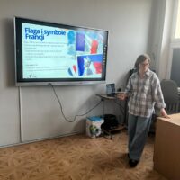 Podczas spotkania w bibliotece uczniowie obejrzeli prezentację multimedialną, dzięki której poznali najważniejsze informacje o Francji. Dowiedzieli się m.in., gdzie leży ten kraj, jaka jest jego stolica oraz jakie symbole są z nim związane. Poznali także ciekawostki dotyczące języka francuskiego, znanych zabytków – takich jak Wieża Eiffla czy Luwr – a także francuskiej przyrody, tradycji i kuchni.