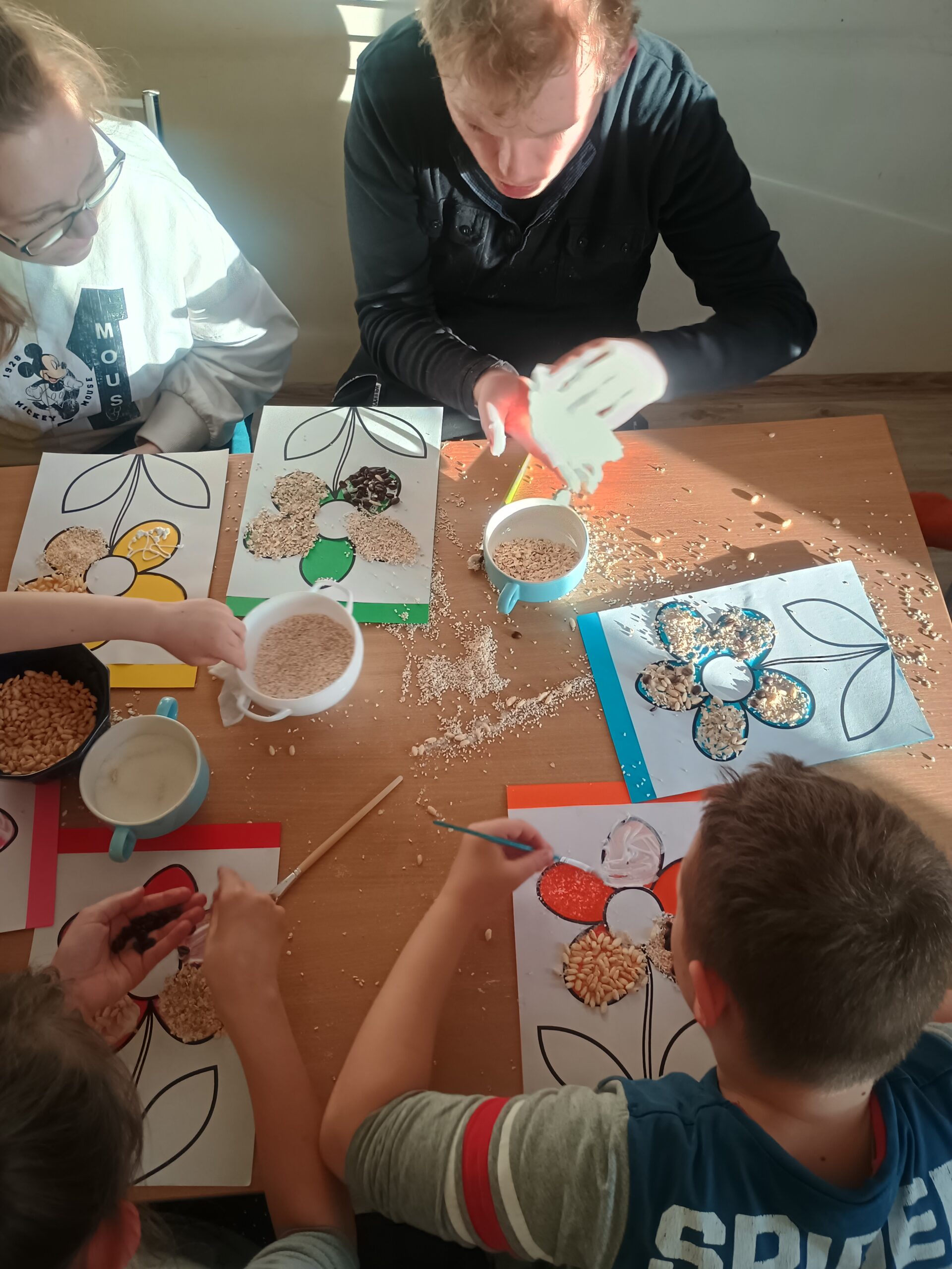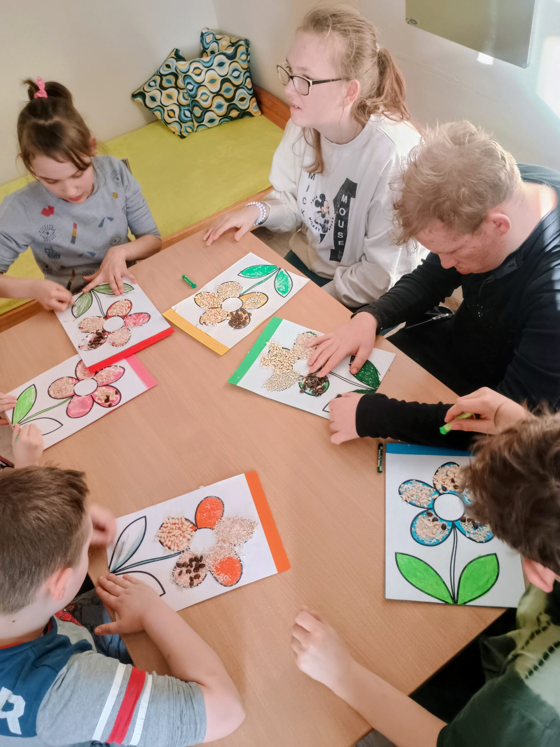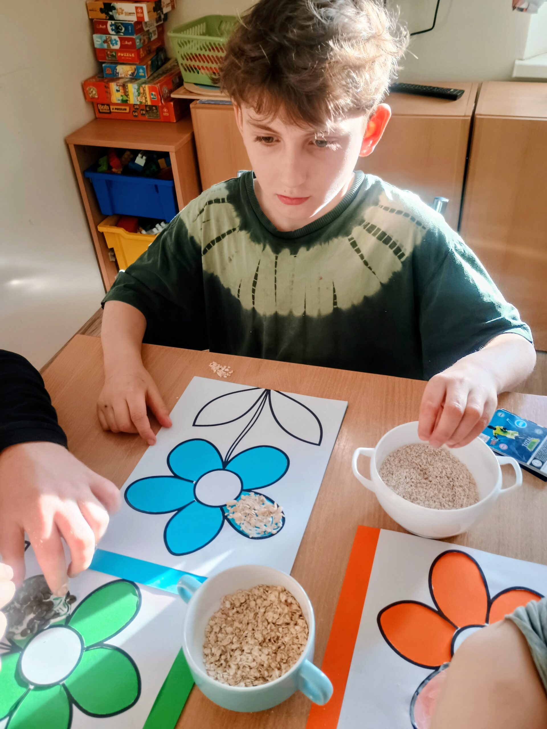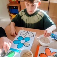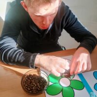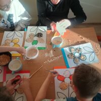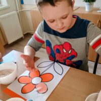 Ostatnio wychowankowie grupy I i II Internatu stworzyli sensoryczną pracę plastyczną, która nawiązywała do nadchodzącej wiosny. Było dużo zapachów, różnorodnych faktur i ćwiczenia motoryki małej.
