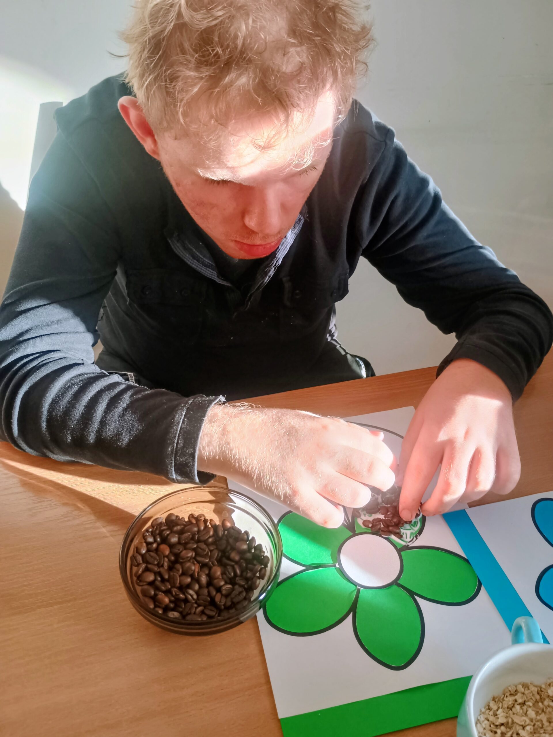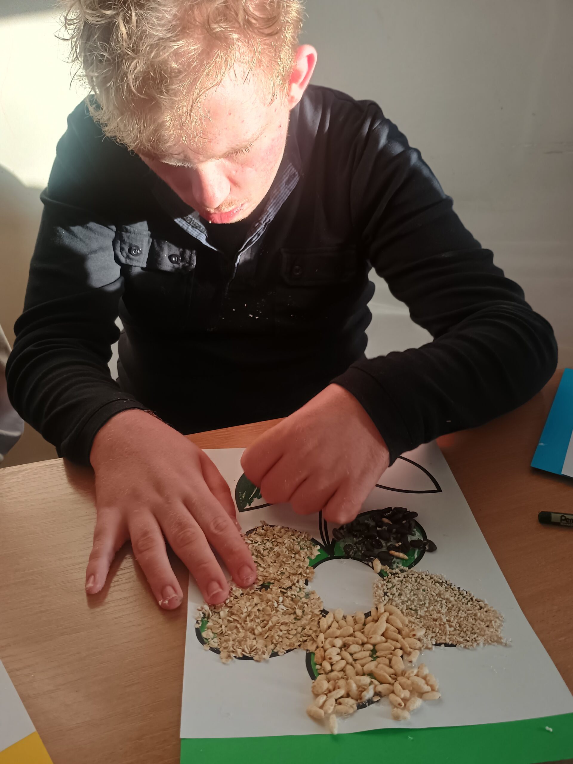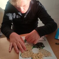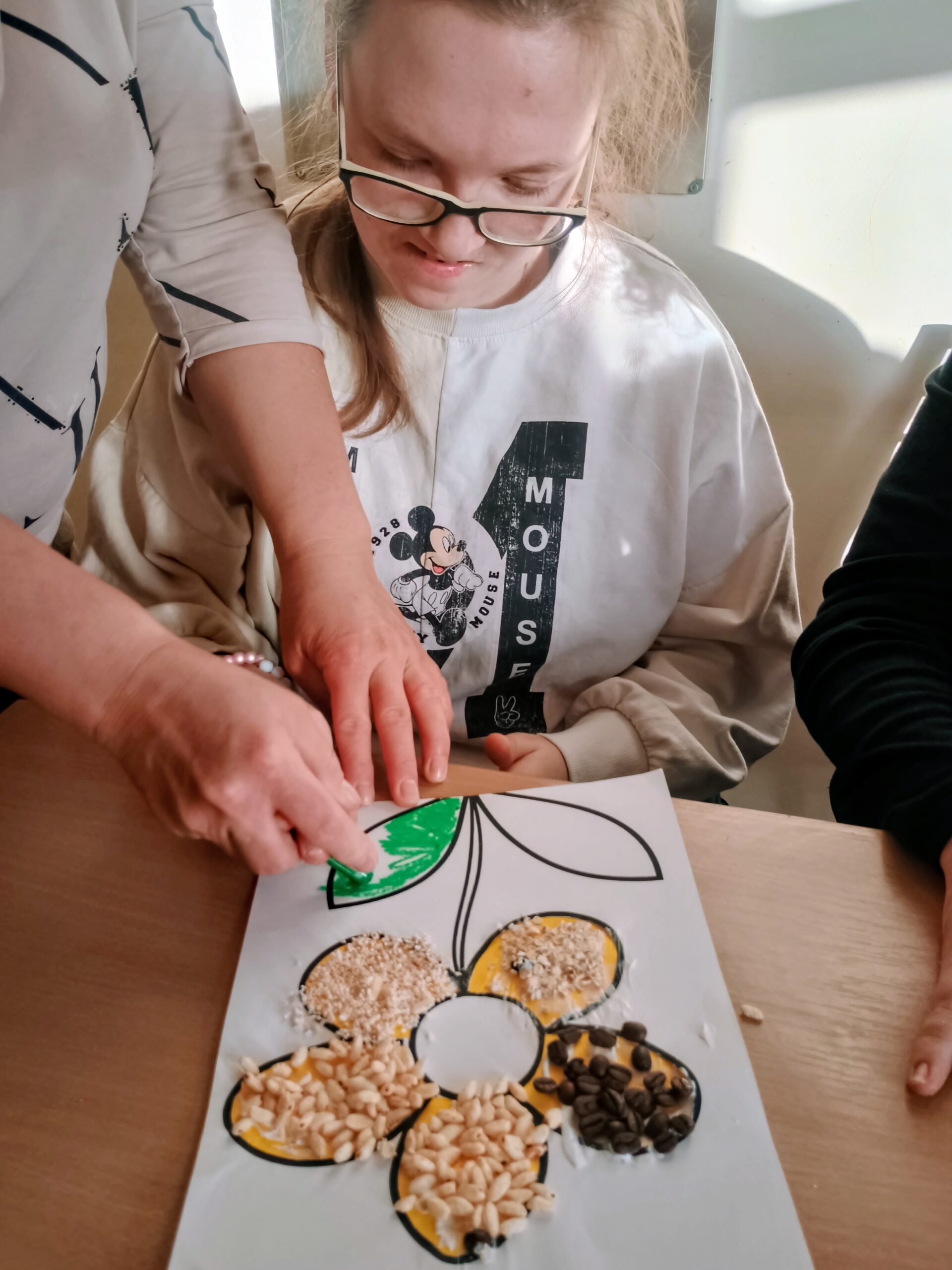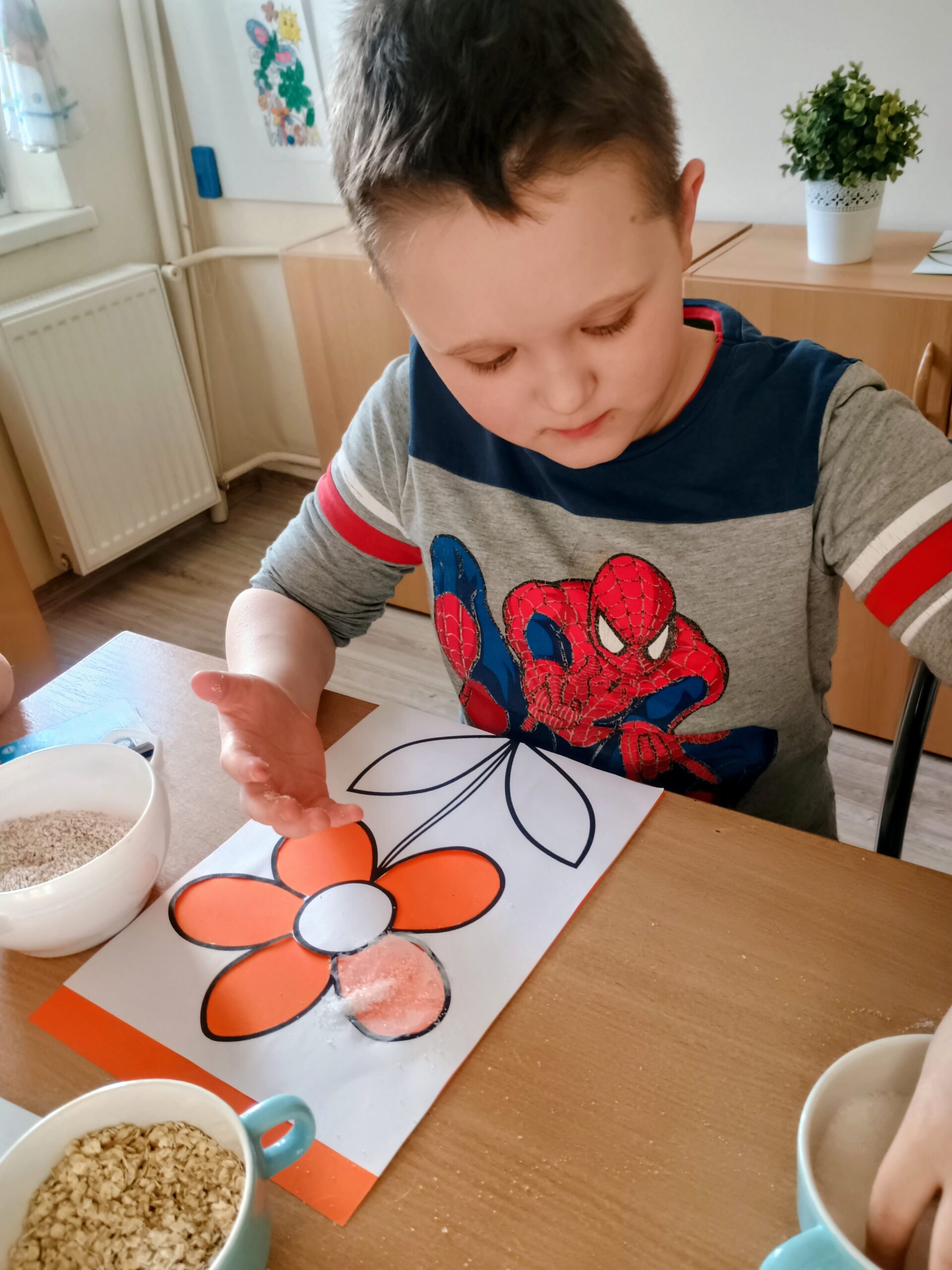 Ostatnio wychowankowie grupy I i II Internatu stworzyli sensoryczną pracę plastyczną, która nawiązywała do nadchodzącej wiosny. Było dużo zapachów, różnorodnych faktur i ćwiczenia motoryki małej.