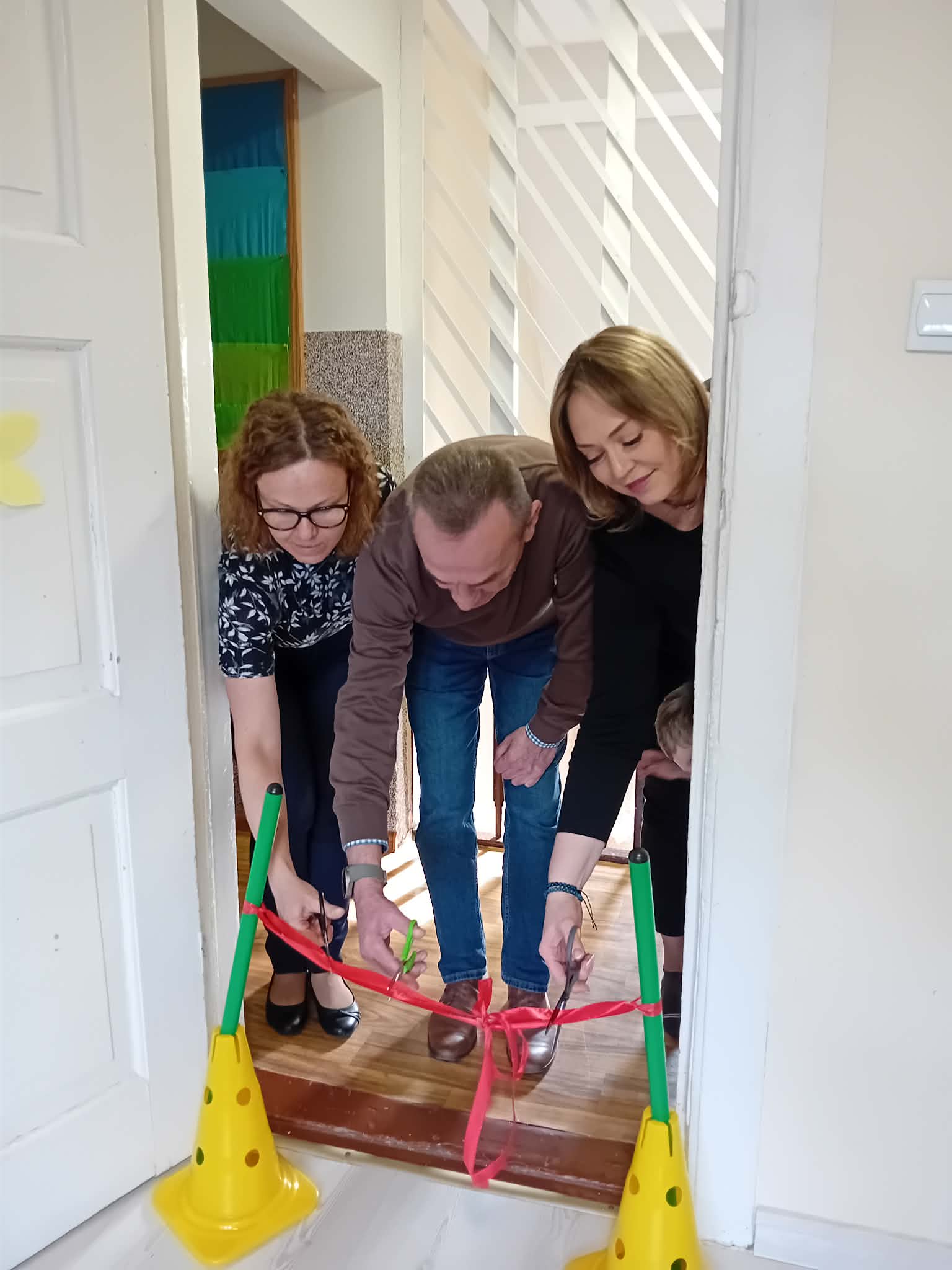 Dnia 11 marca 2026 r. w internacie odbyło się uroczyste otwarcie sali integracji sensorycznej. Dyrektor Specjalnego Ośrodka Szkolno-Wychowawczego nr 1 w Elblągu, pan Leszek Iwańczuk, kierownik internatu pani Kamila Kisiel oraz terapeuta integracji sensorycznej pani Izabela Kusaj uroczyście przecięli wstęgę, otwierając wyjątkową przestrzeń stworzoną z myślą o dzieciach.