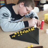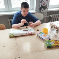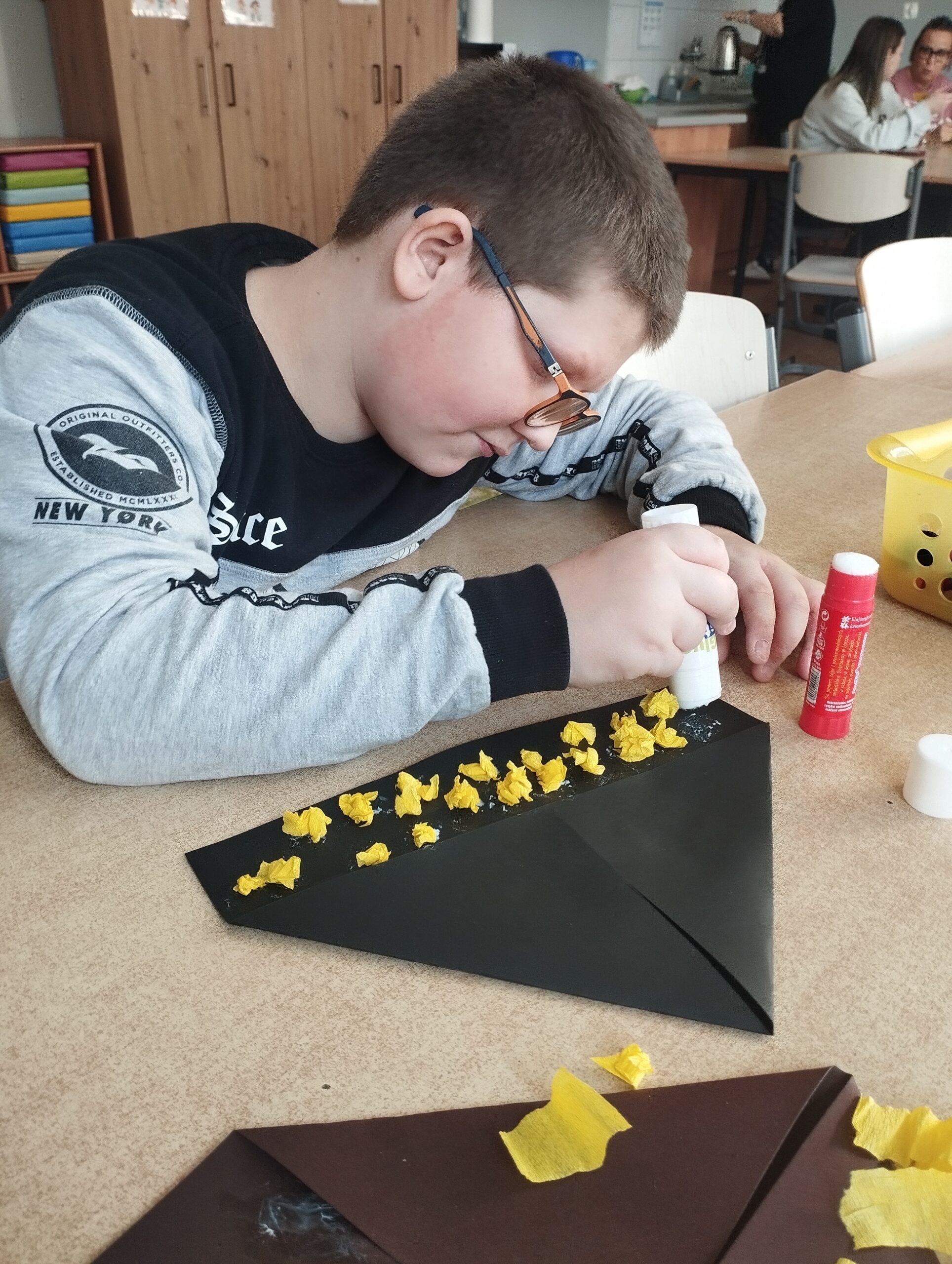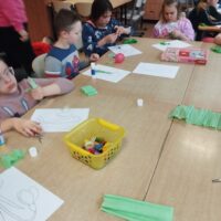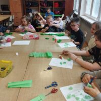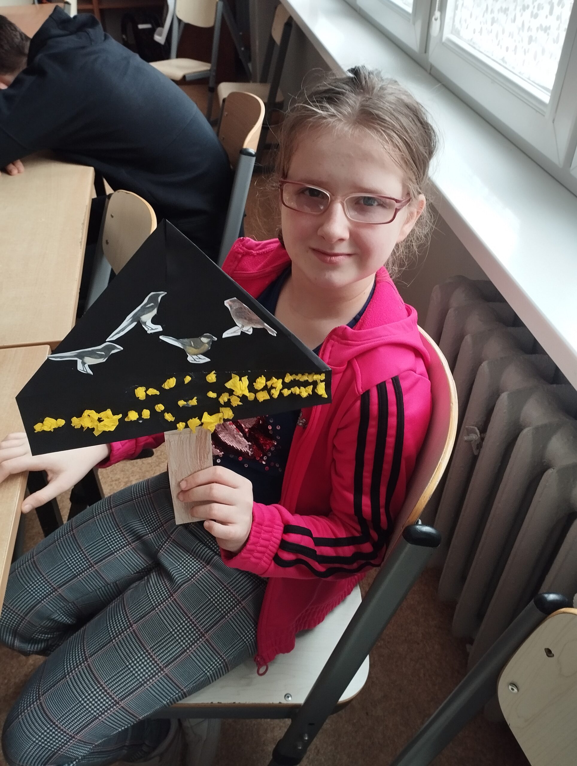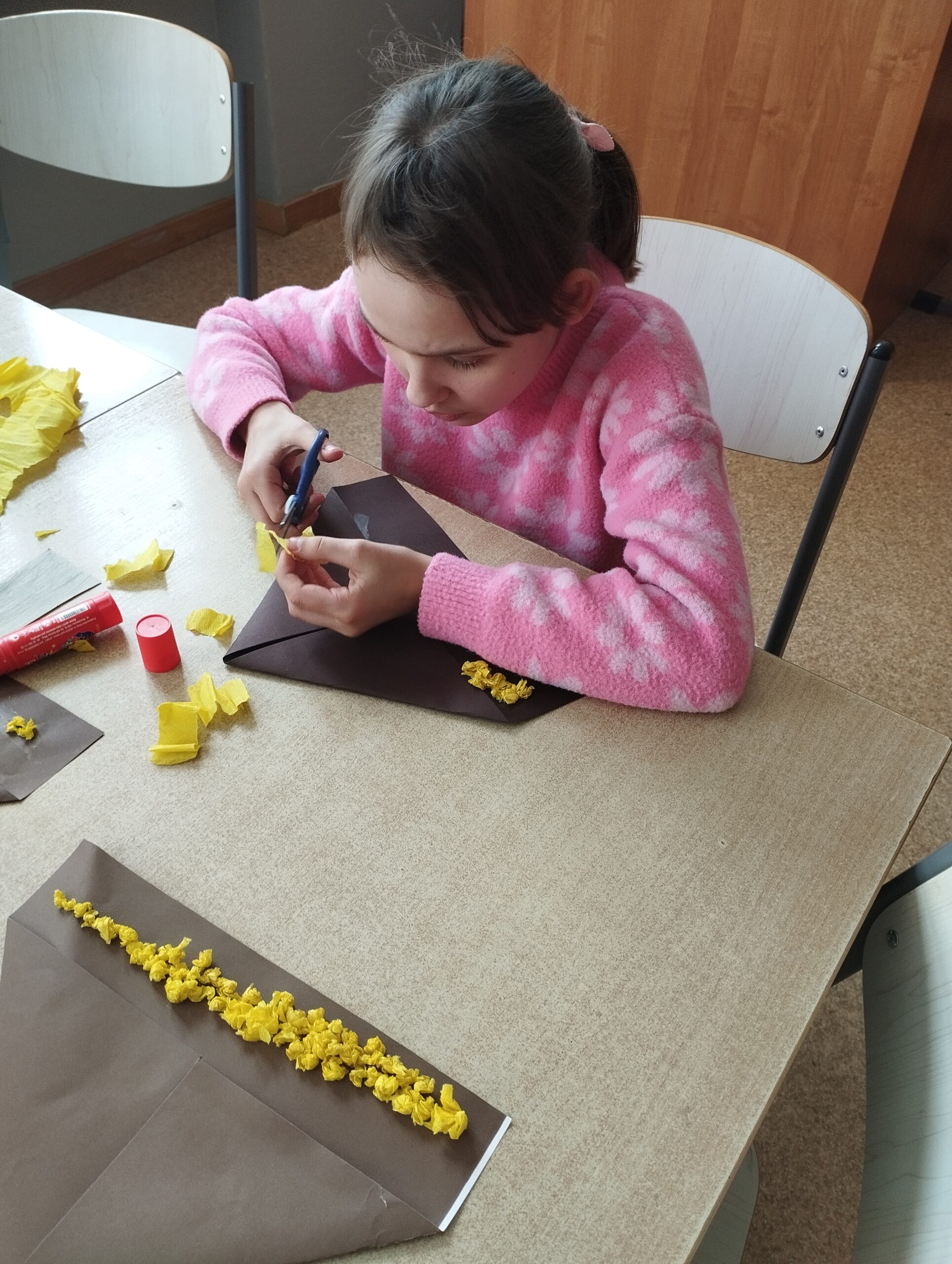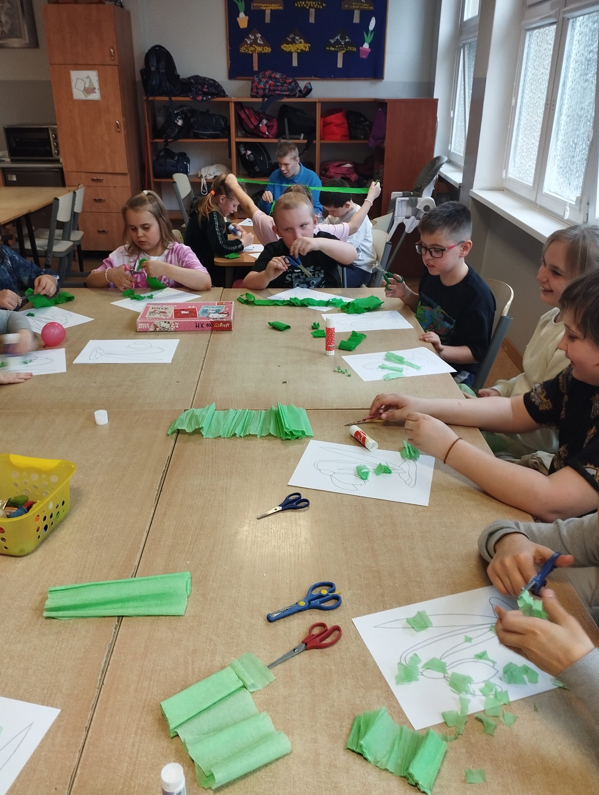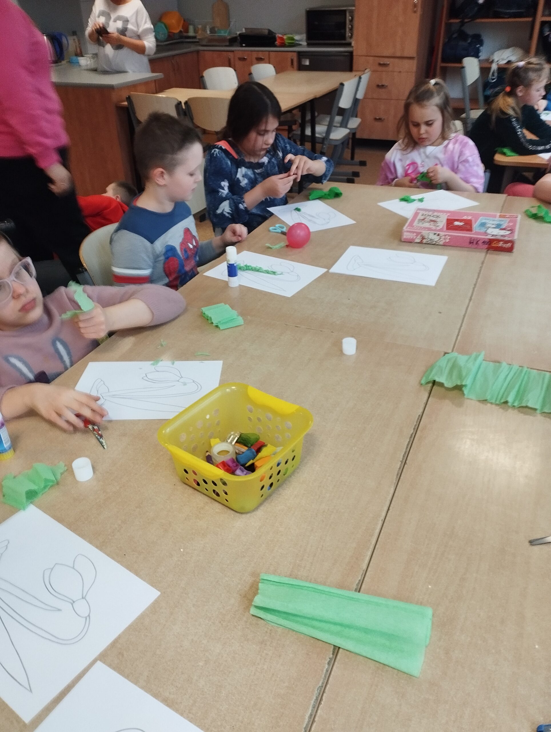 Podczas zajęć plastycznych dzieci miały okazję rozwijać swoją wyobraźnię oraz zdolności manualne, tworząc różnorodne prace z wykorzystaniem ciekawych materiałów. Z okazji Dnia Kota uczniowie stworzyli urocze koty z rolek po papierze toaletowym. Malowali rolki farbami, dorysowywali wąsy, oczy i ogonki, dzięki czemu każdy kot stał się unikatowy. W trakcie kolejnych zajęć powstały także karmniki dla ptaków, które uczniowie wyklejali z kolorowych elementów. Przy tej okazji nauczyli się, jak ważna jest troska o ptaki, zwłaszcza w chłodniejszych miesiącach. Na zajęciach pojawił się również wiosenny akcent – dzieci wyklejały przebiśniegi, które są jednymi z pierwszych zwiastunów nadchodzącej wiosny. Zajęcia dostarczyły dzieciom wiele radości, a wykonane prace ozdobiły świetlicę.