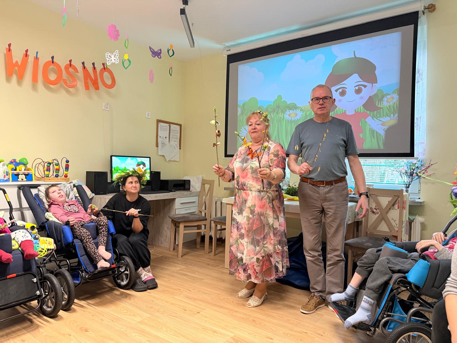 Powitanie wiosny w Domu Pomocy Społecznej było radosnym wydarzeniem dla naszych uczniów. Wspólnie obserwowano pierwsze oznaki wiosny – kwitnące kwiaty, zielone gałązki i śpiew ptaków. Podczas zajęć sadziliśmy bratki oraz owies, które ozdobią naszą klasę. Nie zabrakło także piosenek o wiośnie, które wprowadziły wszystkich w dobry nastrój. To był czas pełen uśmiechu, radości i wspólnej zabawy.