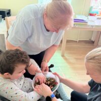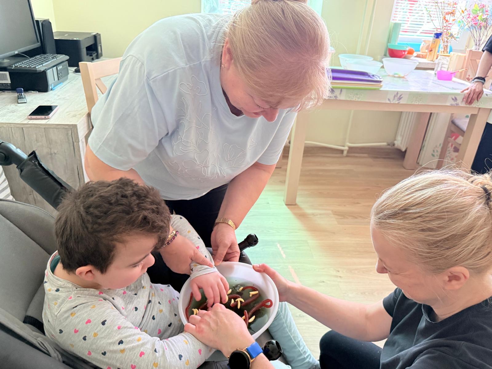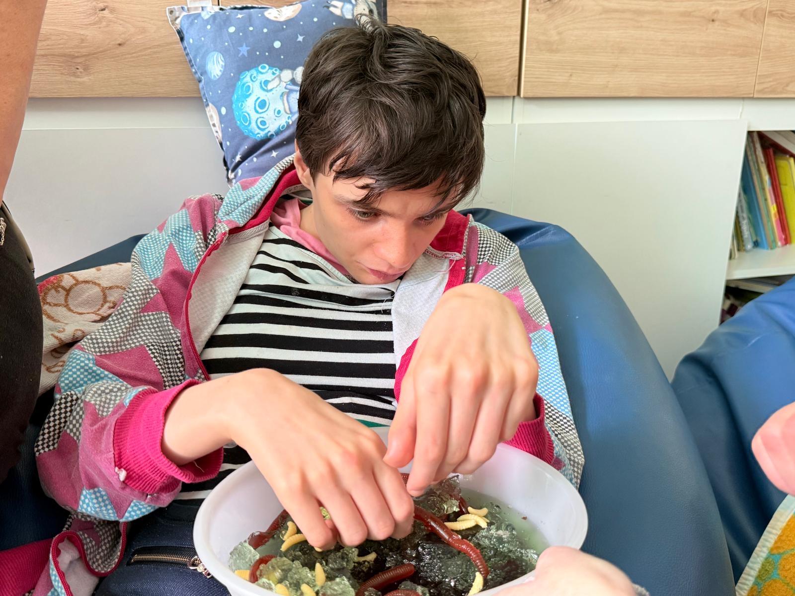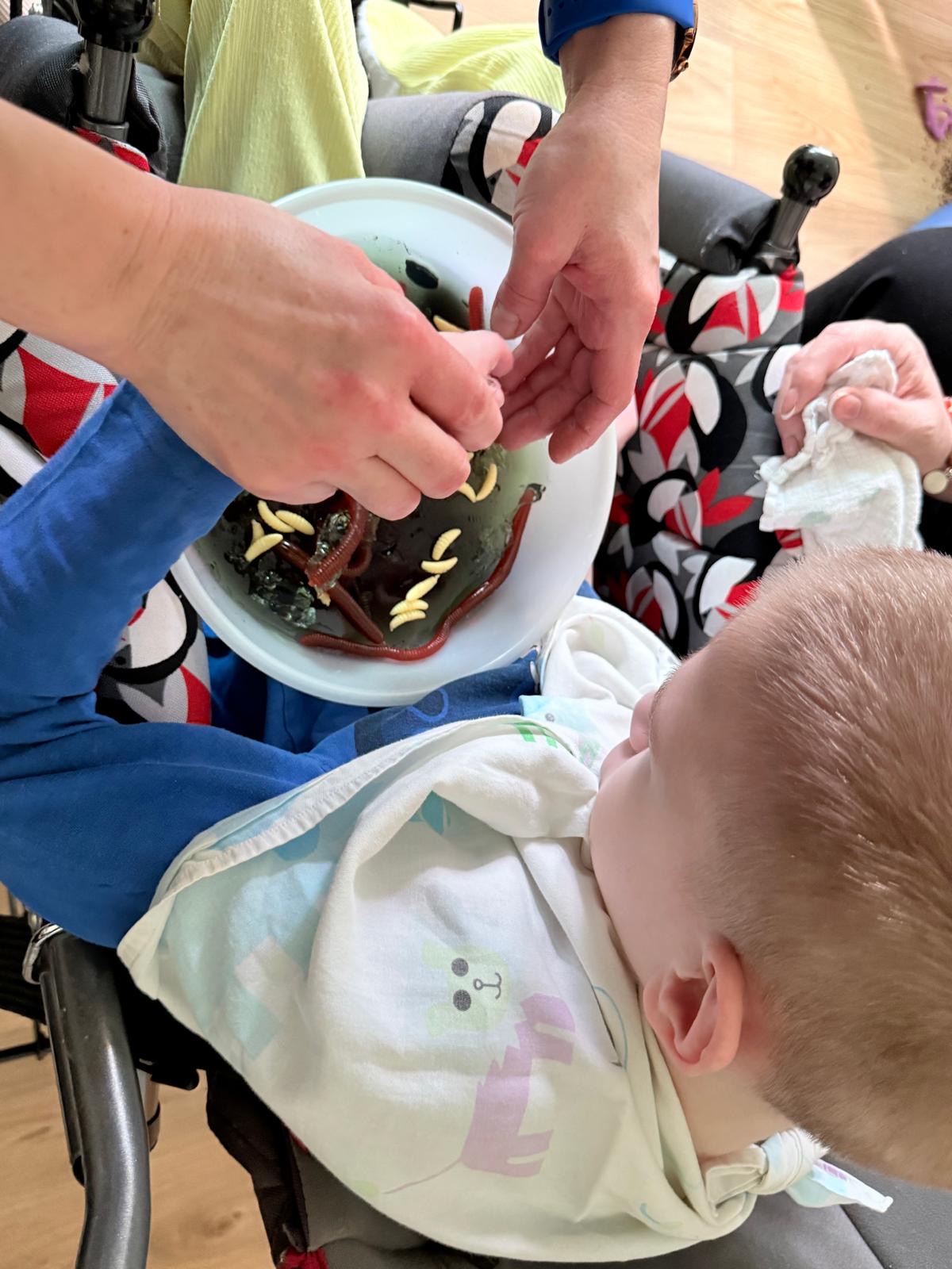 Podczas zajęć dzieci miał możliwość bliżej poznać świat robaków. Małe żyjątka były dosłownie w zasięgu ręki, a inne robaki gumowe, pluszowe, żelowe posłużyły do zabawy. Próbowali namalować kolorowe robaczki na kartce Uczniowie poszukiwali dżdżownic w galaretce, gryce i wodzie. Przyglądali się im z bliska, dotykali, smakowali kwaśne żelki – robaki. Dzieci biorąc udział w zabawie rozwijały małą motorykę oraz wszystkie zmysły.