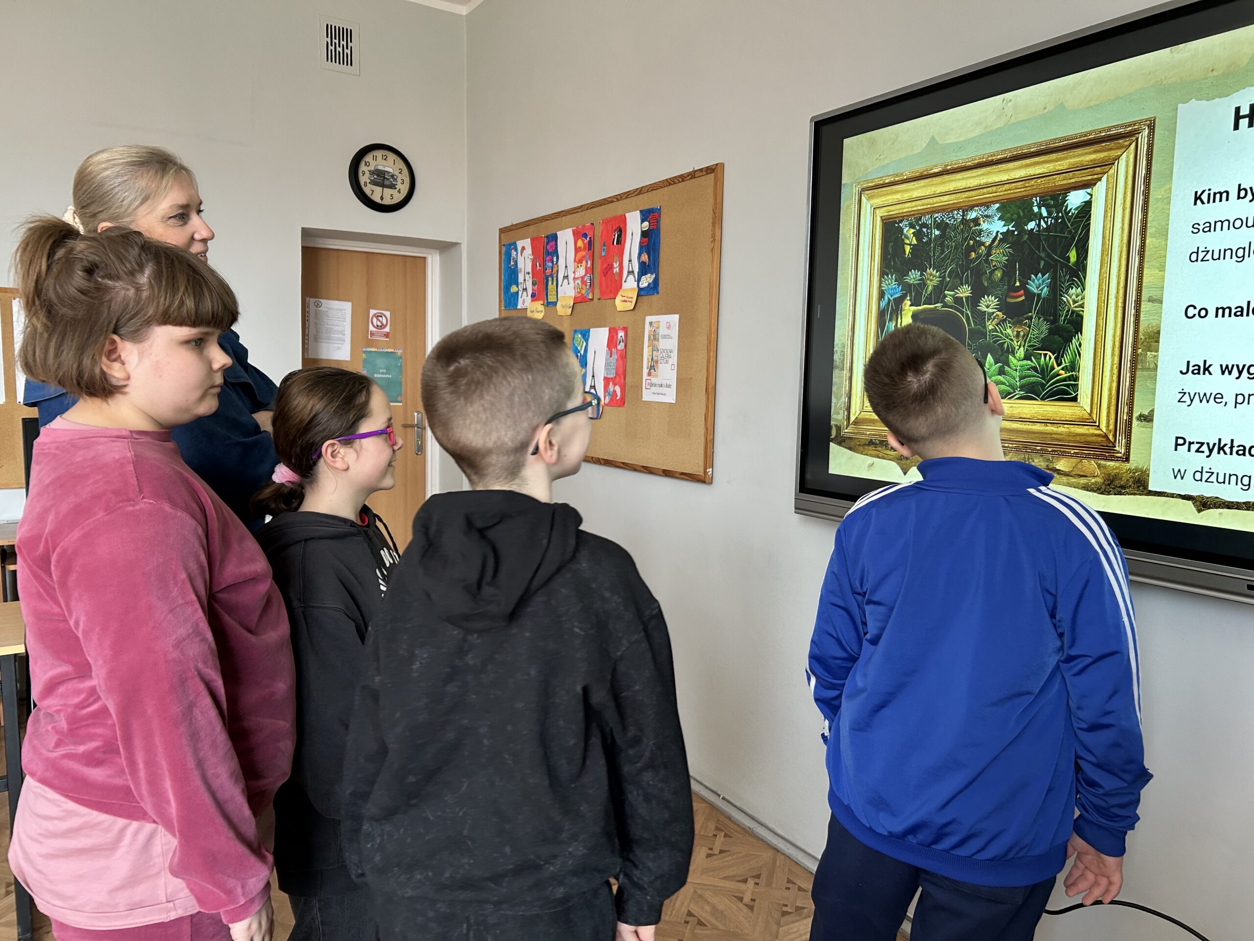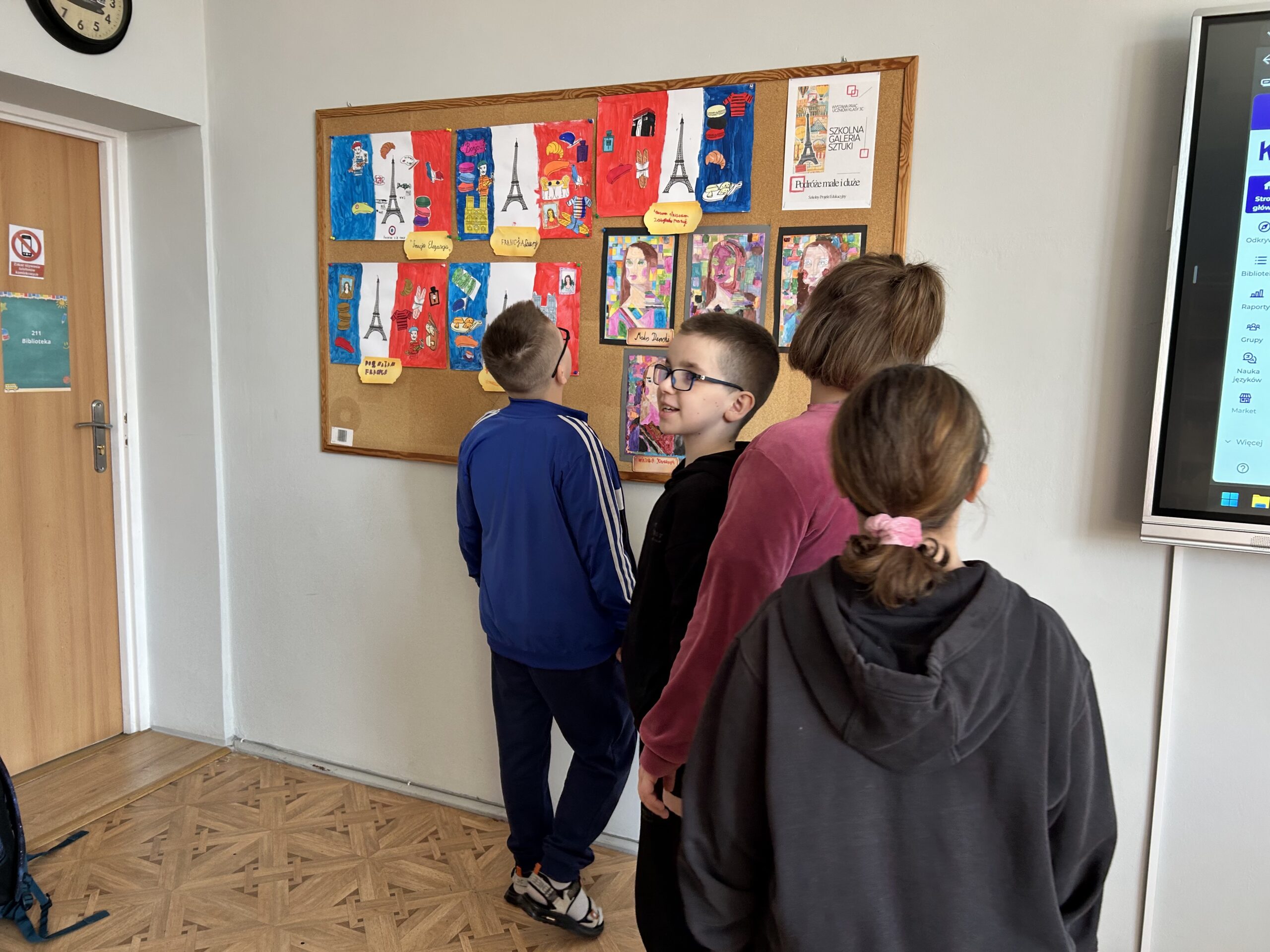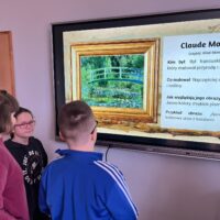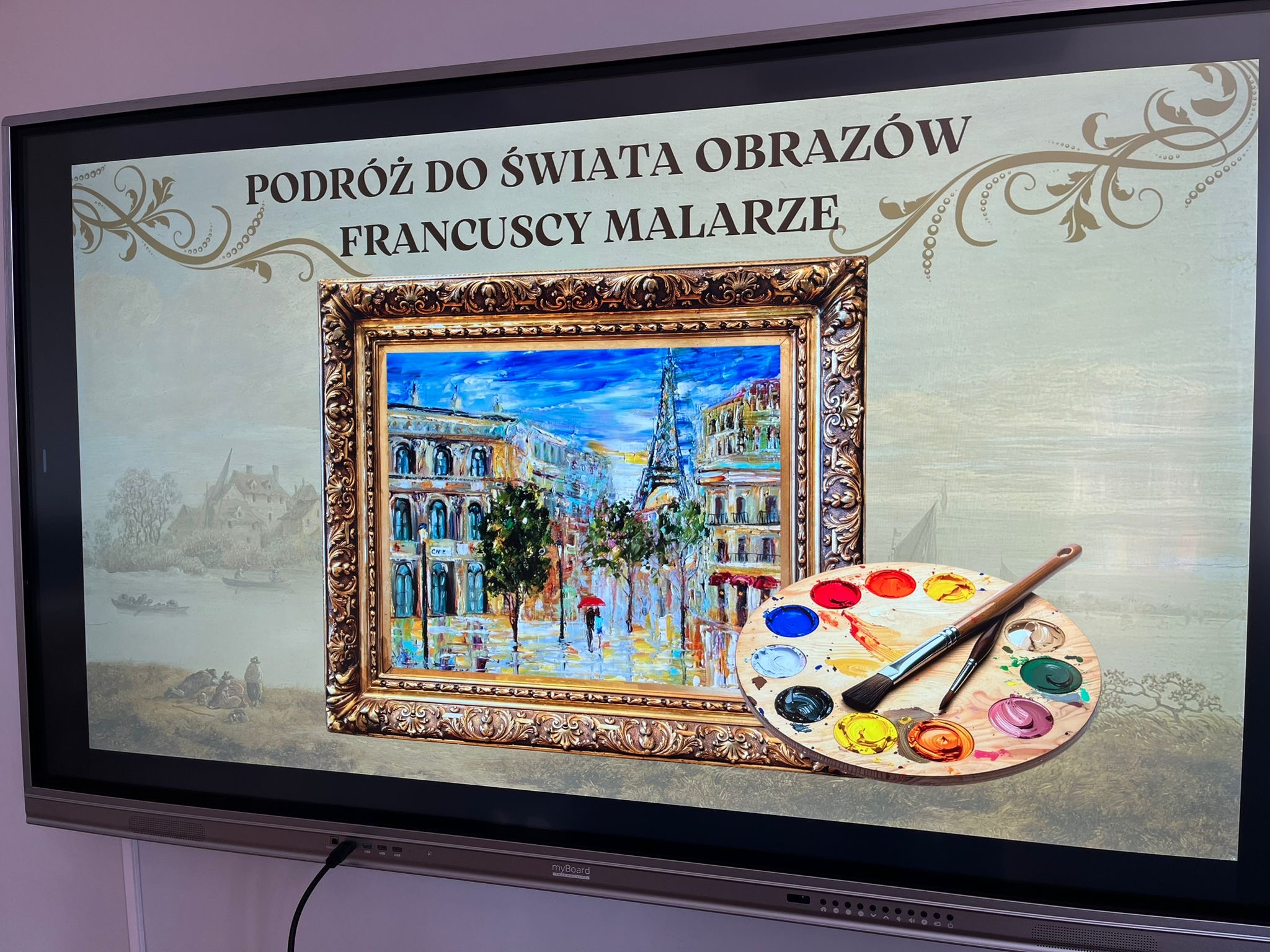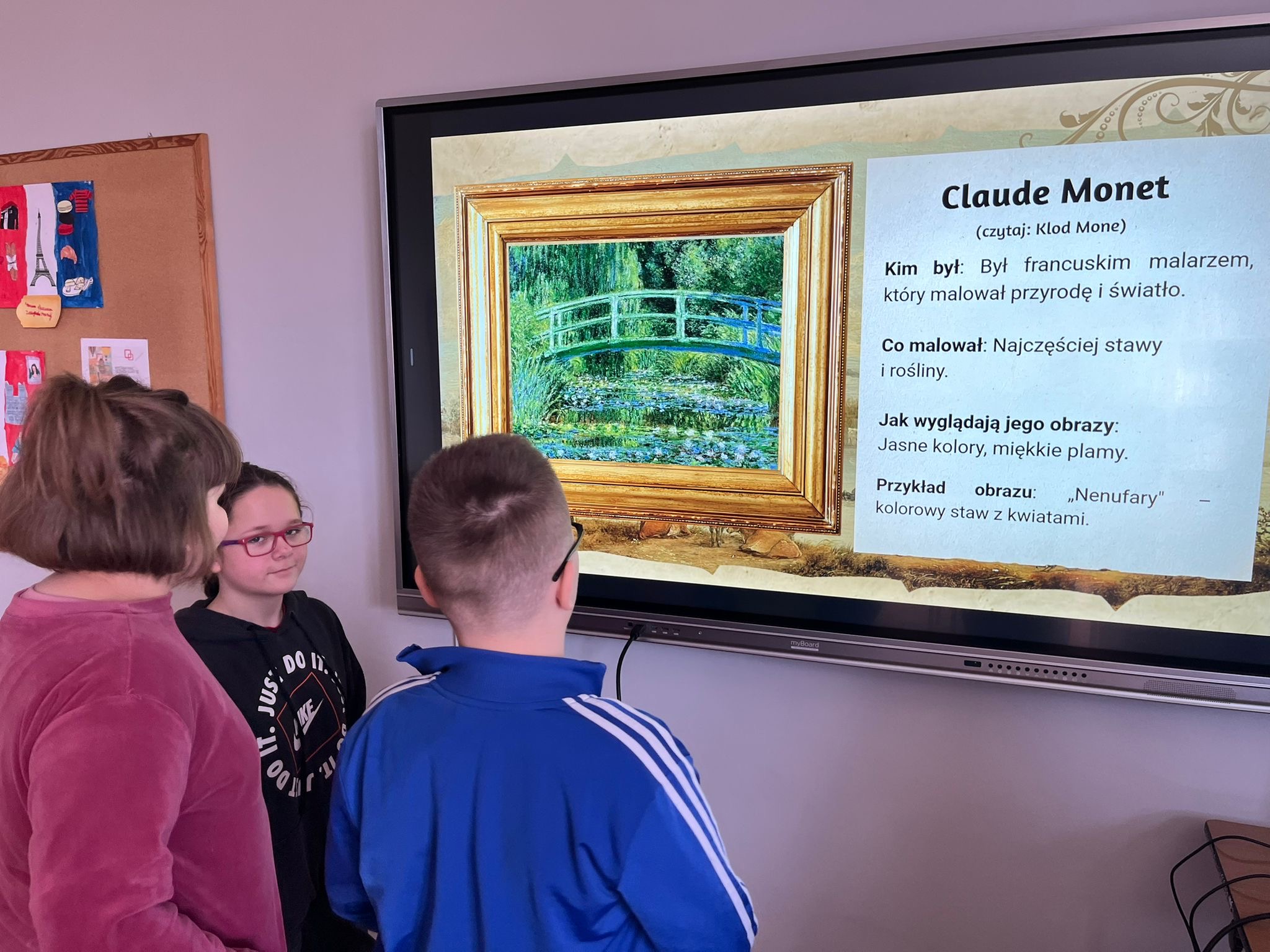 Na początku uczniowie wzięli udział w quizie Kahoot dotyczącym Francji, który pozwolił w przystępny sposób utrwalić wcześniej zdobyte informacje. Następnie obejrzeli prezentację poświęconą francuskim malarzom. Poznali wybranych twórców i ich dzieła, a także podstawowe pojęcia związane ze sztuką, takie jak plama, kontrast i gra światłem.