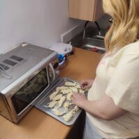 W środowe popołudnie wychowankowie z zaangażowaniem przygotowali i upiekli pyszne rogaliki z nadzieniem, spędzając wspólnie czas w miłej i przyjaznej atmosferze.