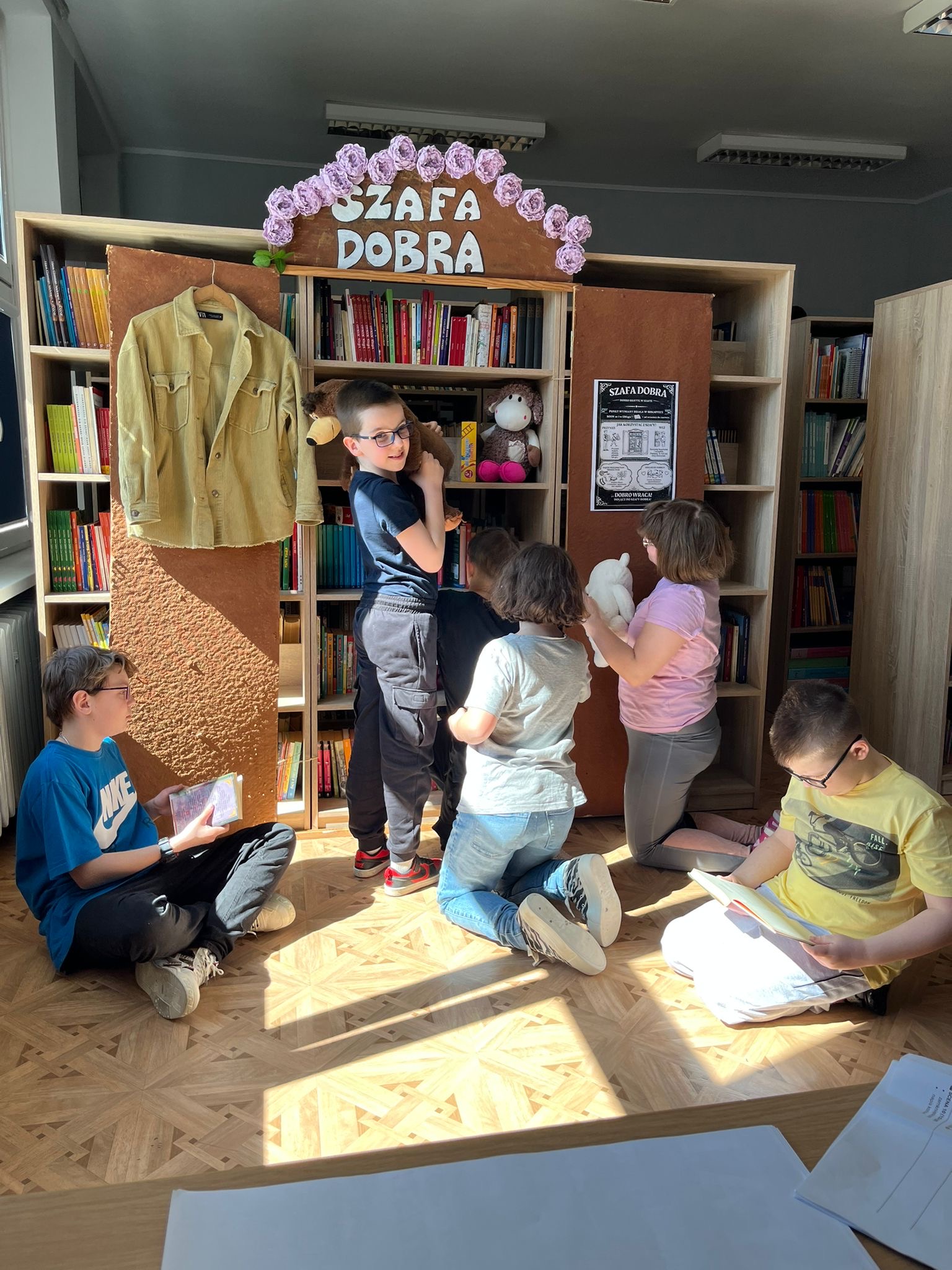 W ramach realizacji programu „Ocalimy Świat” w kwietniu odbyły się zajęcia o charakterze proekologicznym, podczas których uczniowie podjęli się stworzenia krótkiego filmu konkursowego pt. „Szafa Dobra”. Praca została przygotowana na konkurs ekologiczny organizowany przez ZUO.