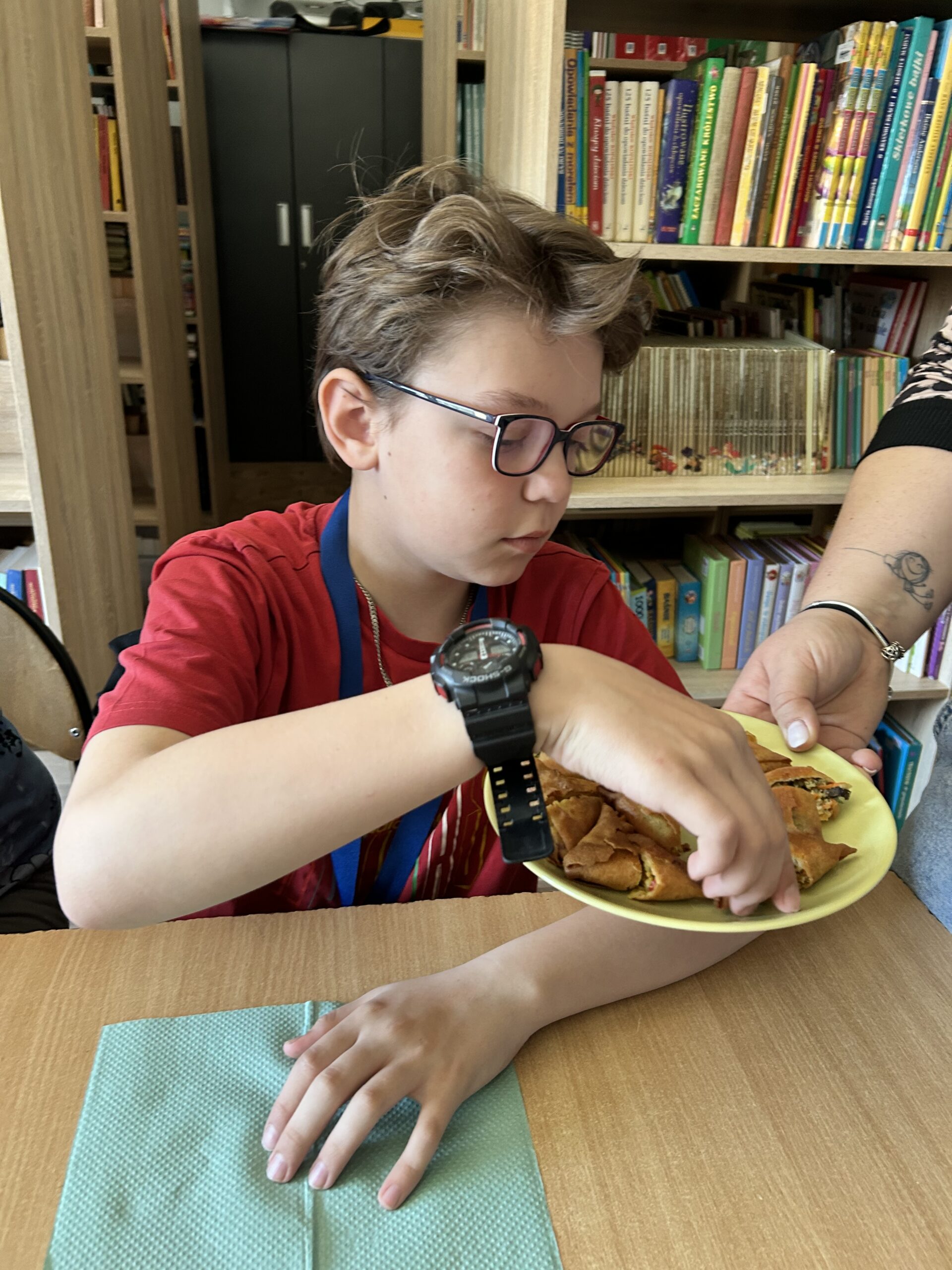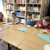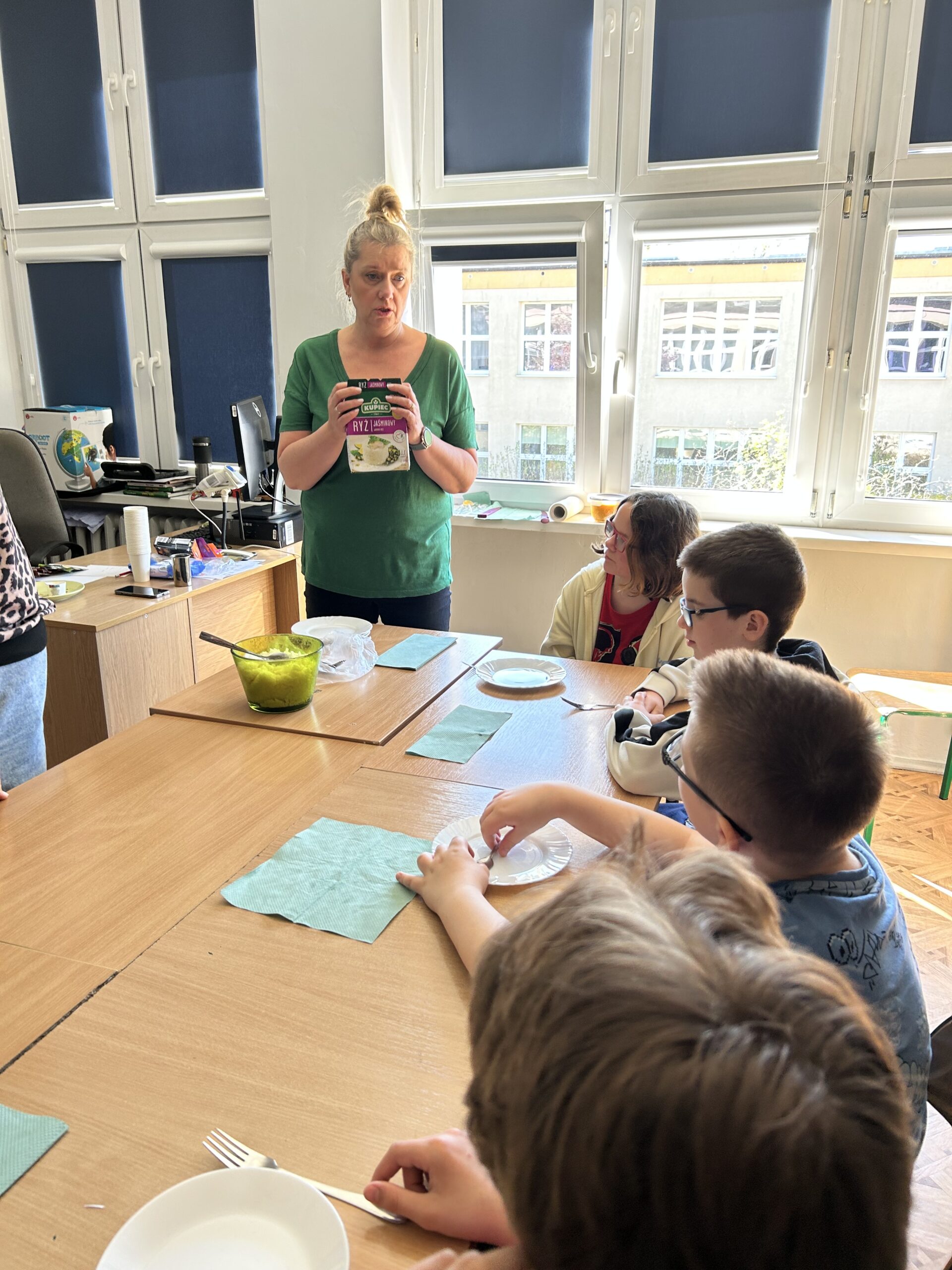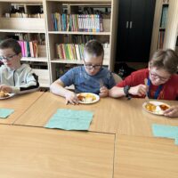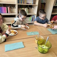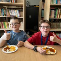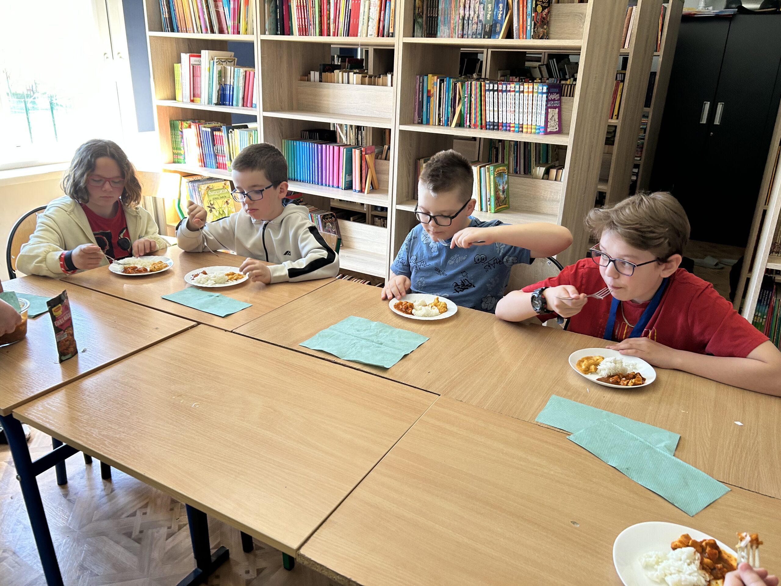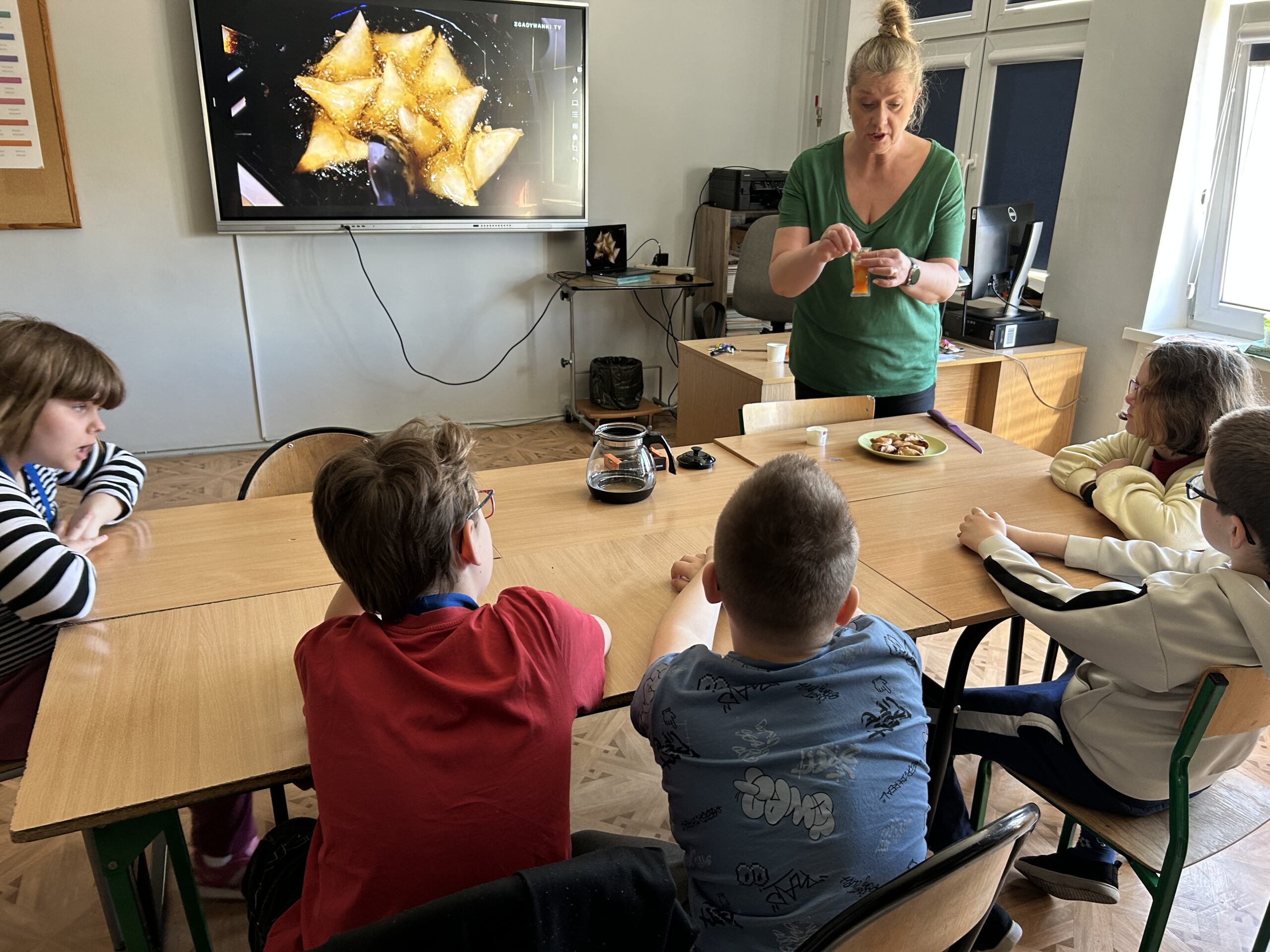 Nie zabrakło także degustacji. Uczniowie spróbowali dań inspirowanych kuchnią indyjską, takich jak ryż jaśminowy, kurczak curry (chicken curry) oraz chicken tikka masala. Poznali również samosy – trójkątne, chrupiące pierożki z nadzieniem, będące jedną z najpopularniejszych przekąsek kuchni indyjskiej.
