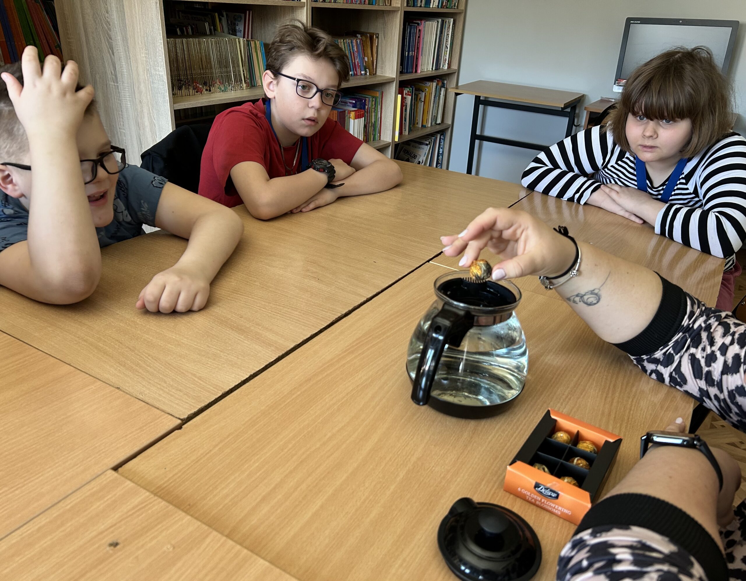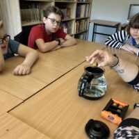 Podczas zajęć rozmawialiśmy również o herbacie i obserwowaliśmy jej przygotowanie, zwracając uwagę na zmiany zachodzące pod wpływem gorącej wody.